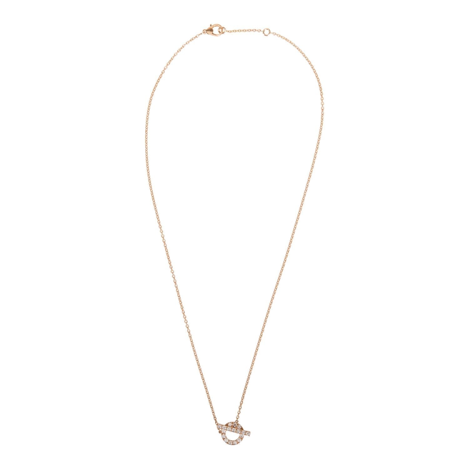 This Necklace is in 18k rose gold San Coloris with bar and ring motif pendant set and round brilliant cut diamonds.