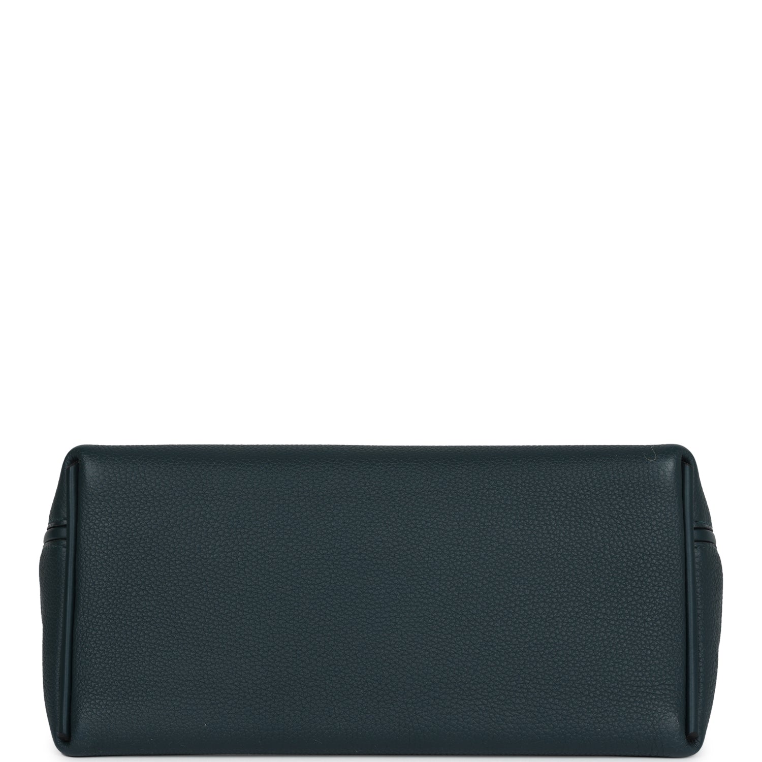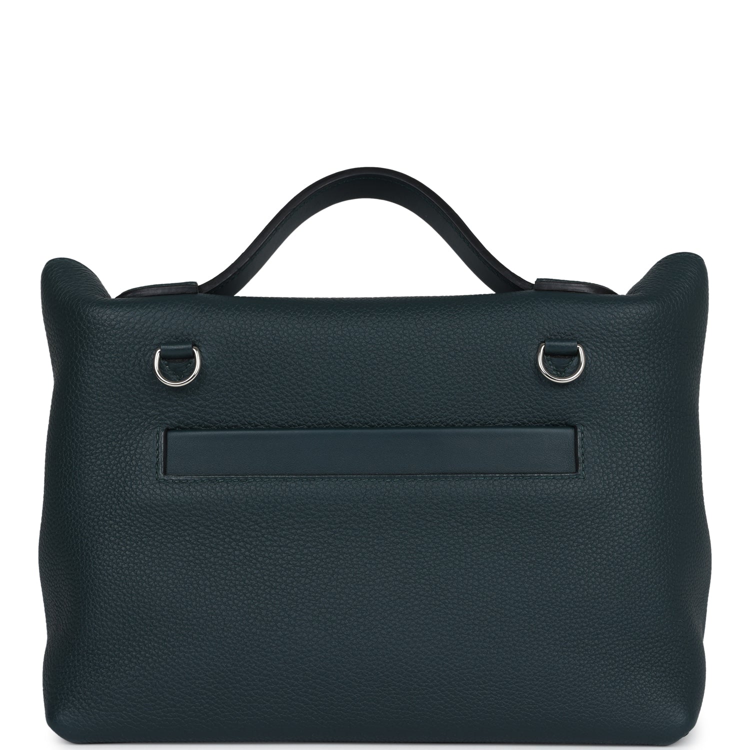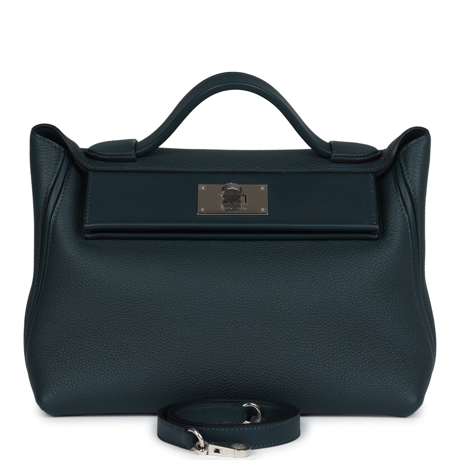 24/24 bag is in Vert Cypress togo leather with palladium hardware and has tonal stitching, front turnlock closure, open rear pocket, single flap top handle and removable shoulder strap.