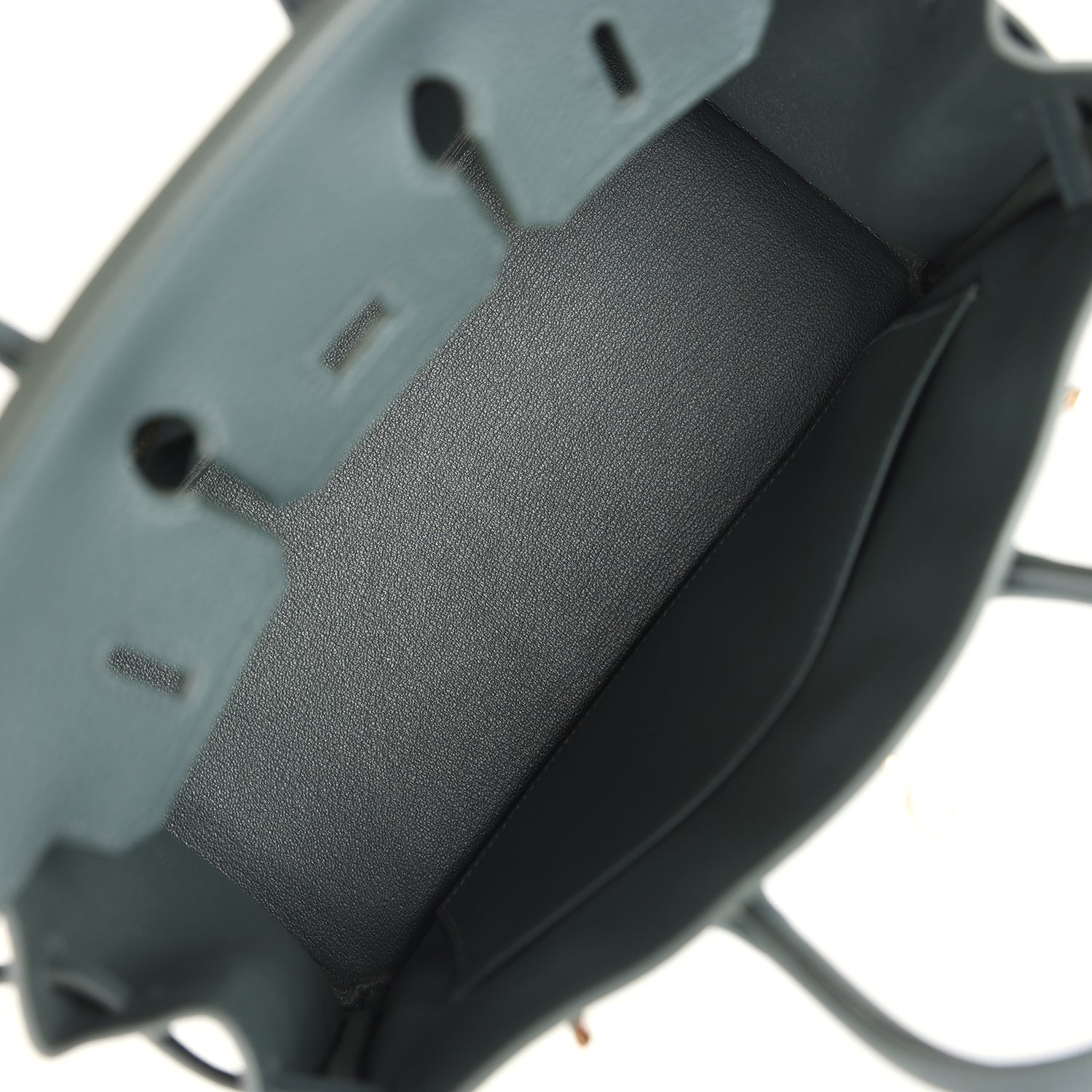 The interior is lined with Vert Mangrove chevre and has one zip pocket with an Hermès engraved zipper pull and an open pocket on the opposite side.