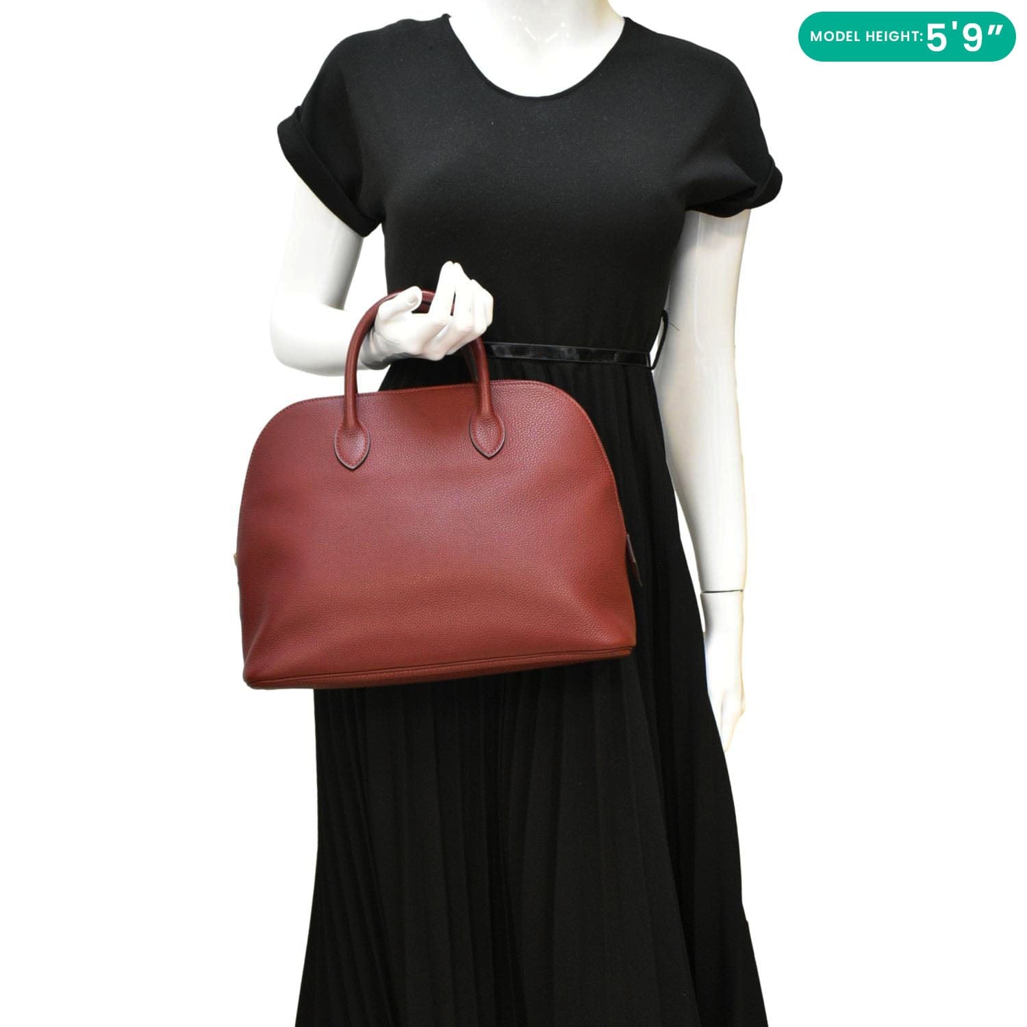 Elevate your style with the HERMES Bolide 30 Vintage Taurillon Leather Satchel Bag in rich maroon. Crafted from luxurious Taurillon leather, this timeless satchel combines elegance and practicality, making it a perfect accessory for any occasion.
