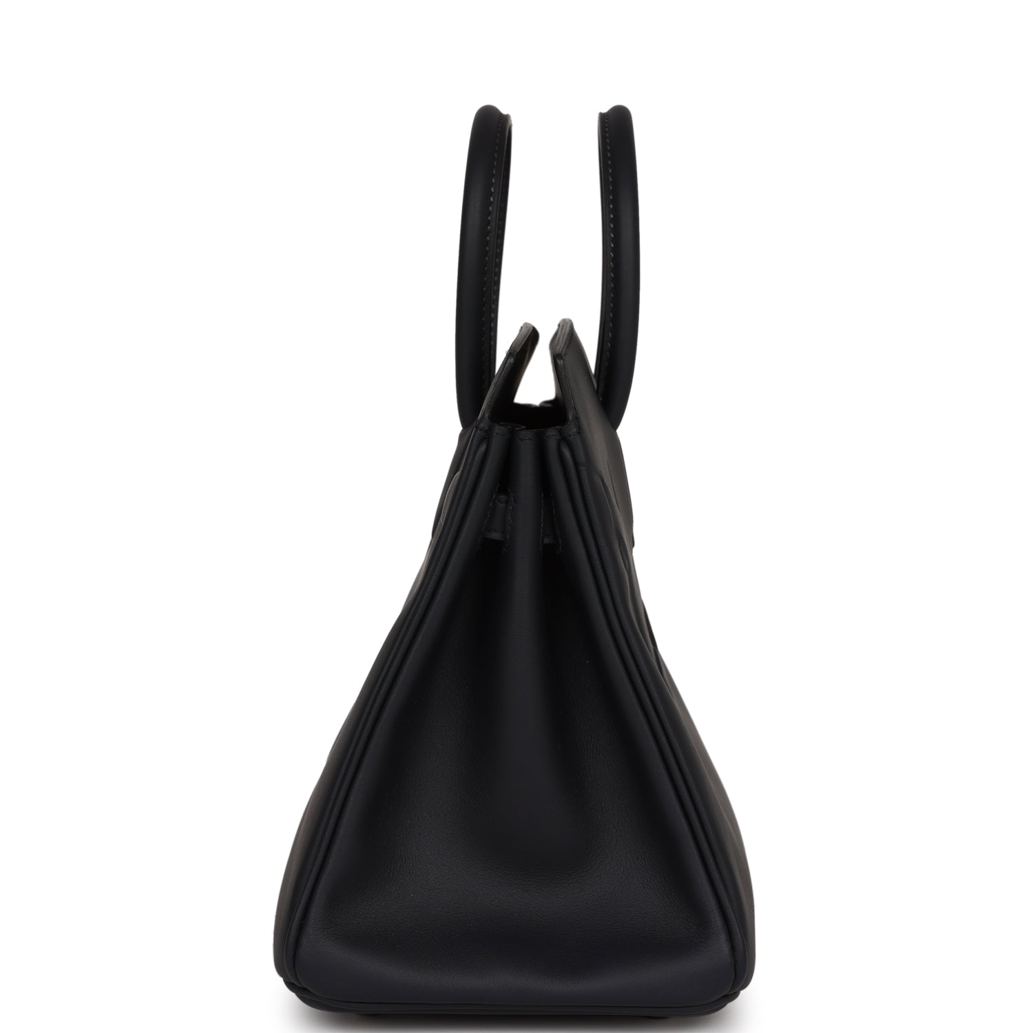This Shadow Birkin is in Caban swift leather with tonal stitching, open top, embossed details and double rolled handles.