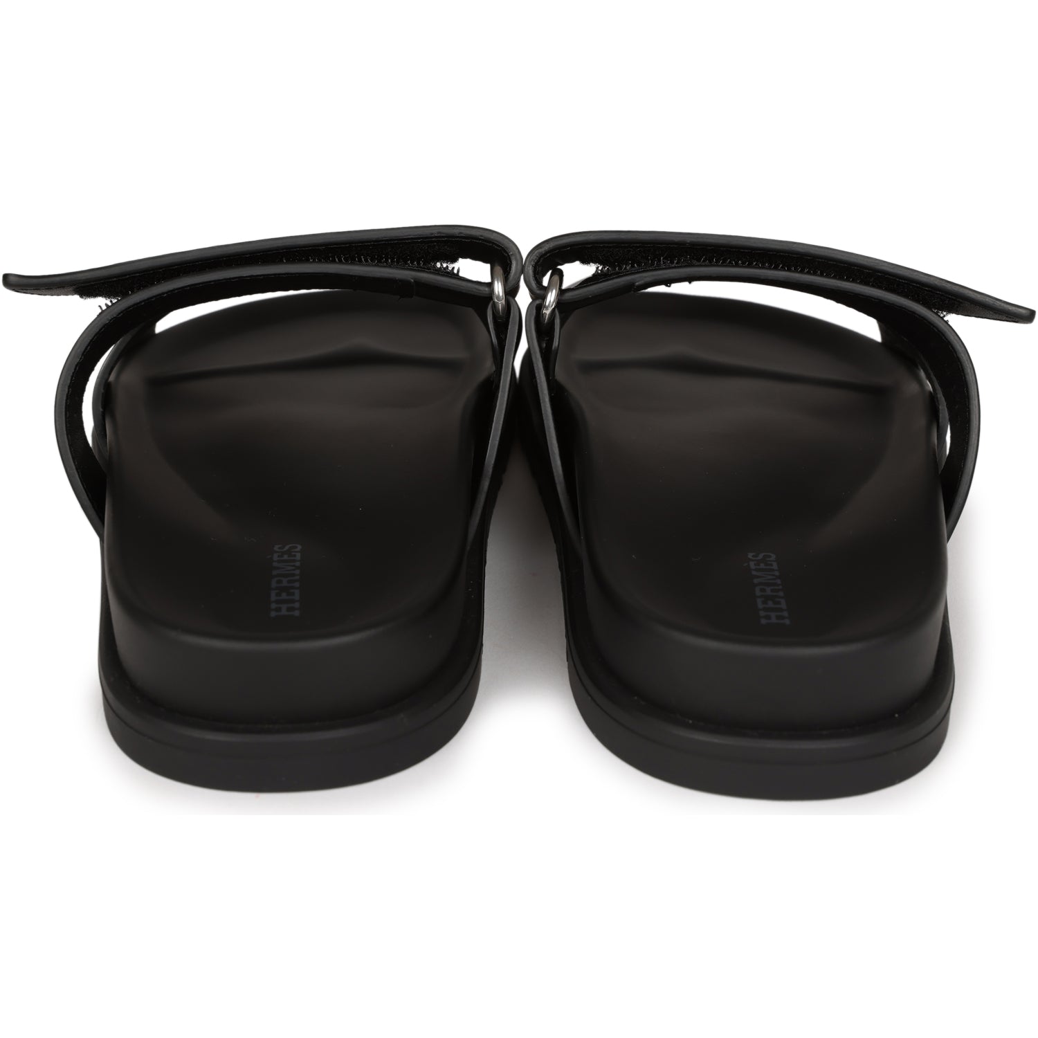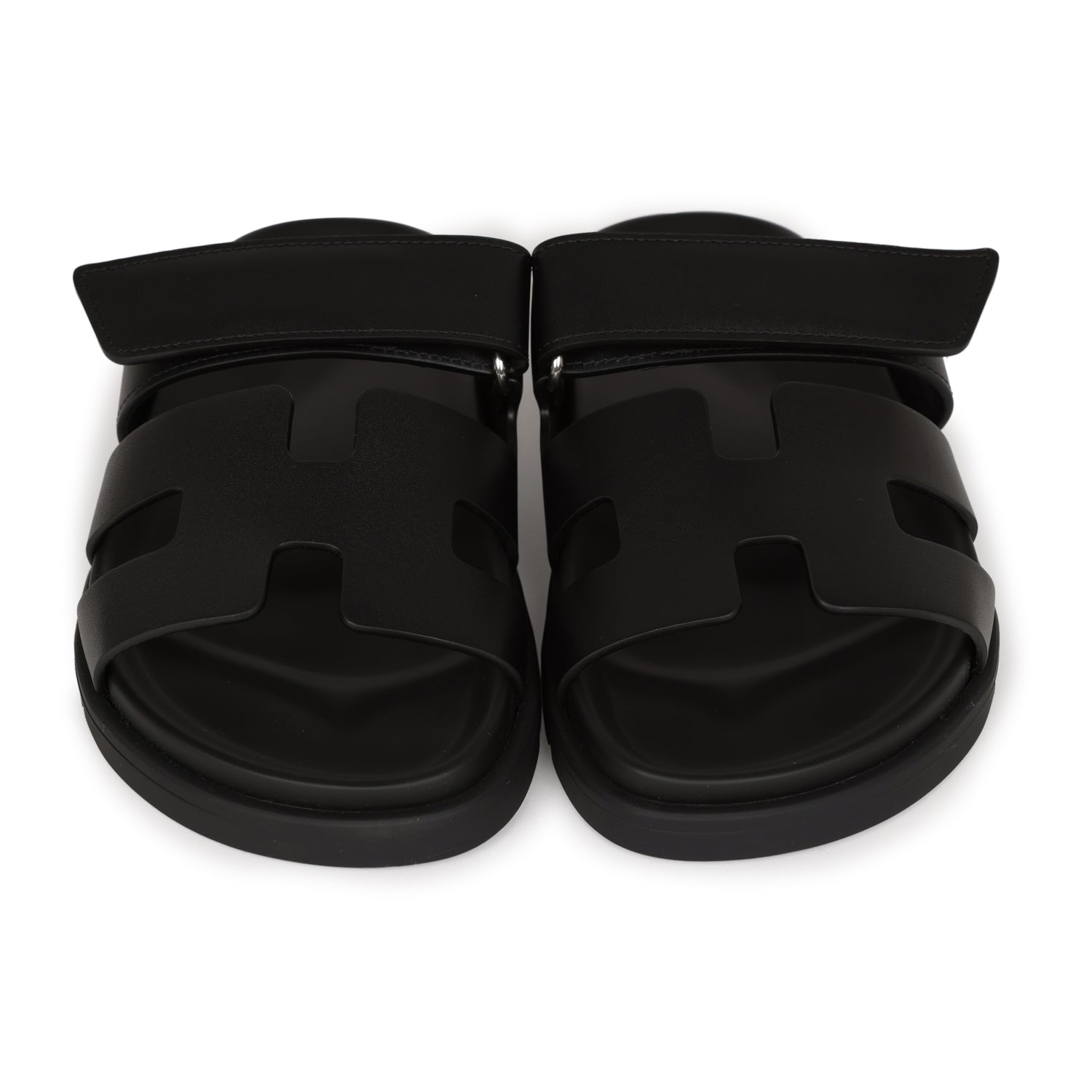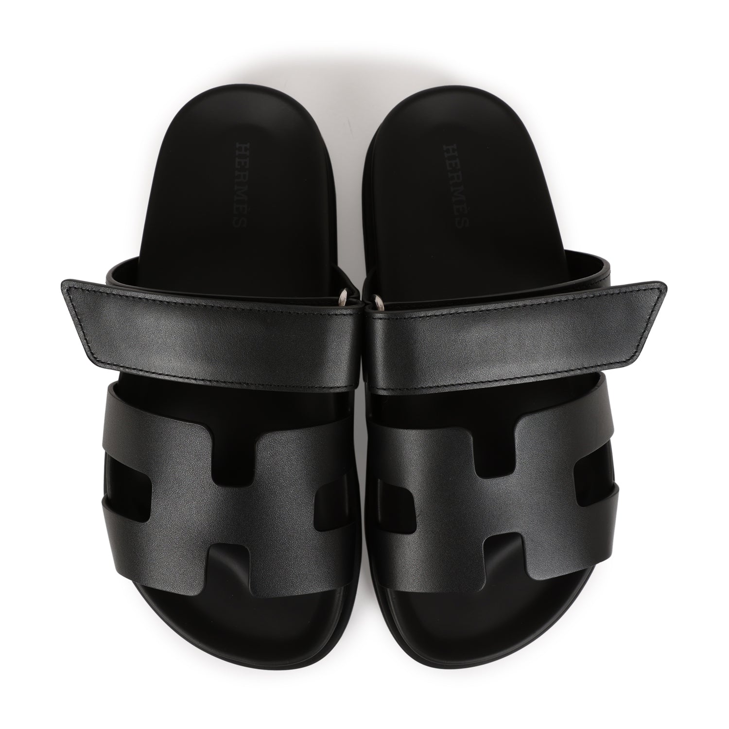 This pair of Cypre sandals are in Black calfskin and feature the iconic H and a velcro crossover strap.