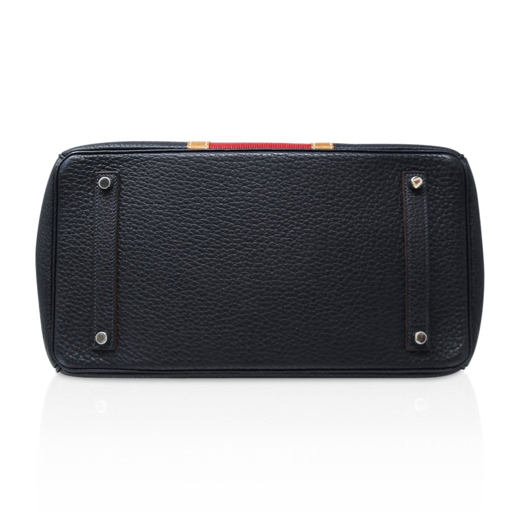 Rare in Blue Indigo with Fauve Barenia leather and accentuated with Rouge Crinolin center.