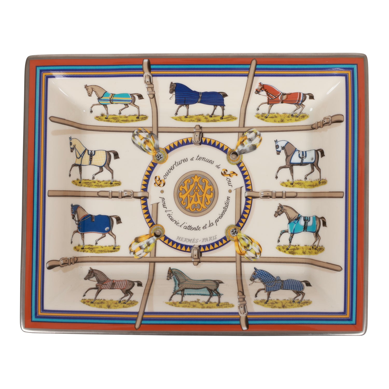 Hermes "Couvertures Et Tenues De Jour" change tray of porcelain in multicolor.