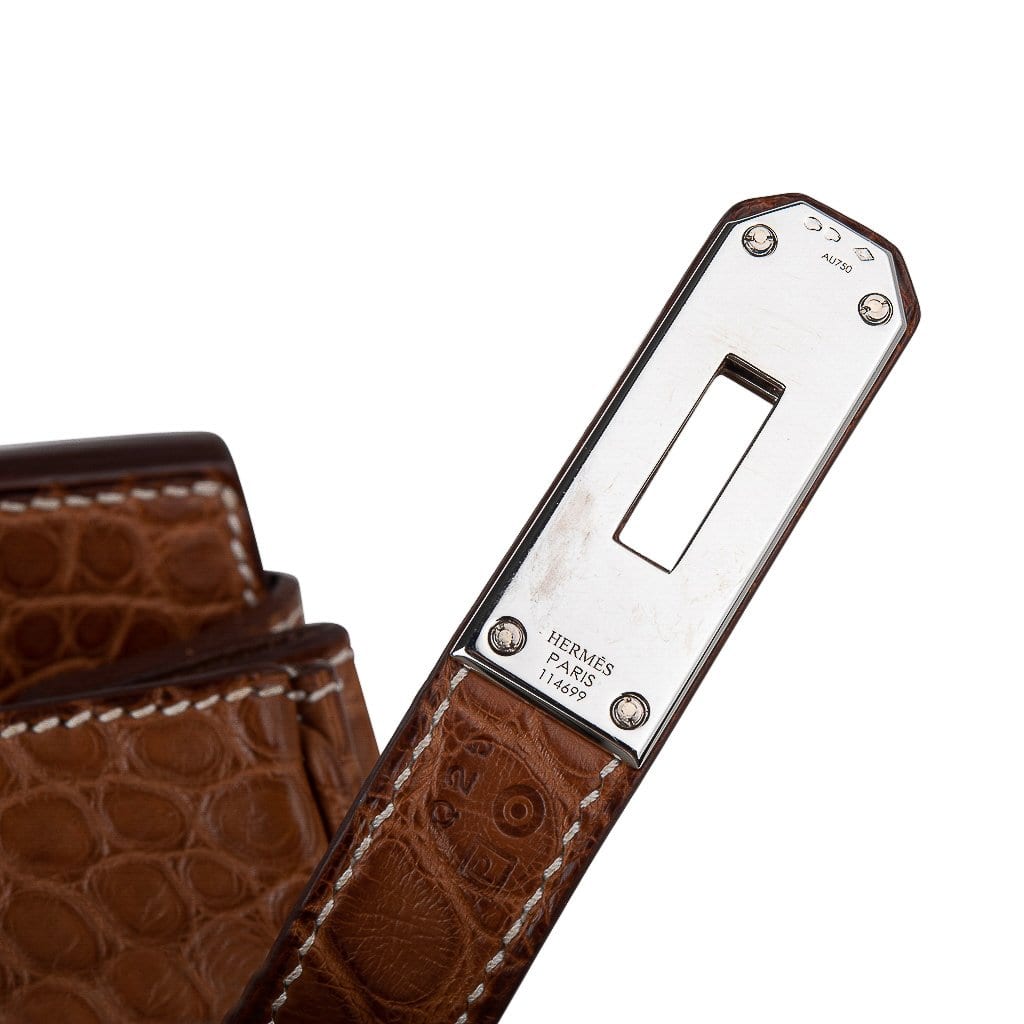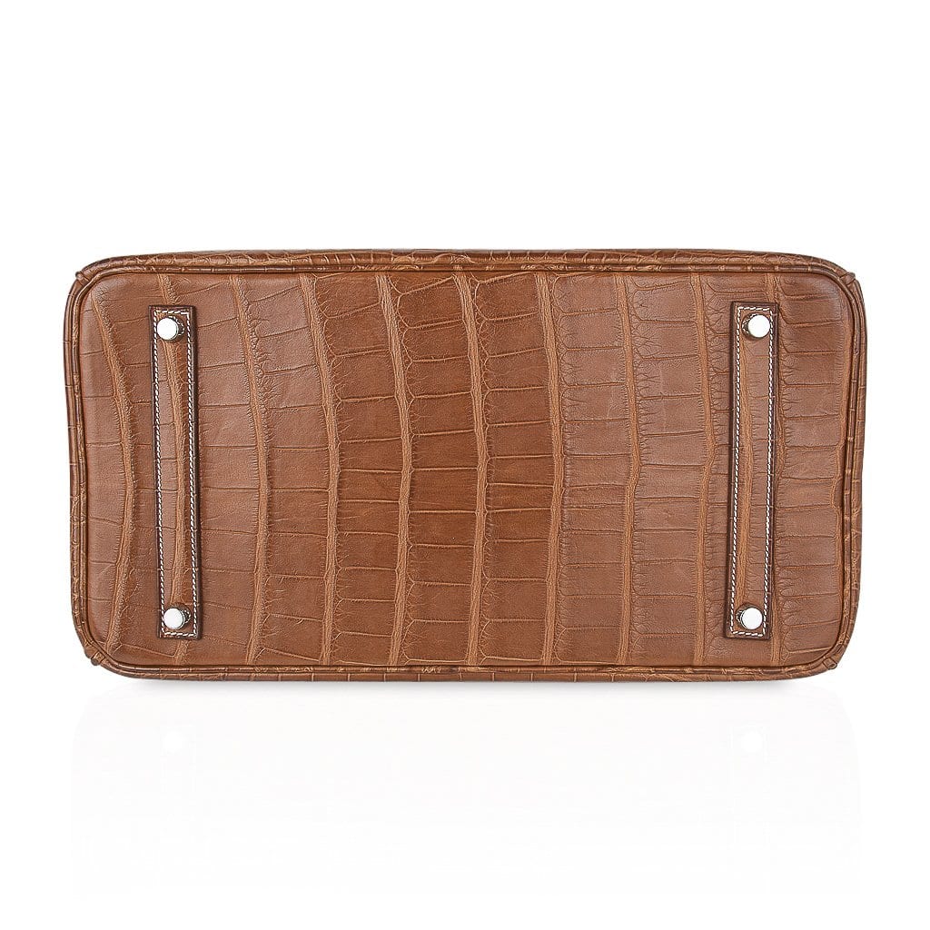 rare Hermes 35 Birkin bag features Hermes set diamonds in Matte Fauve Barenia Alligator.