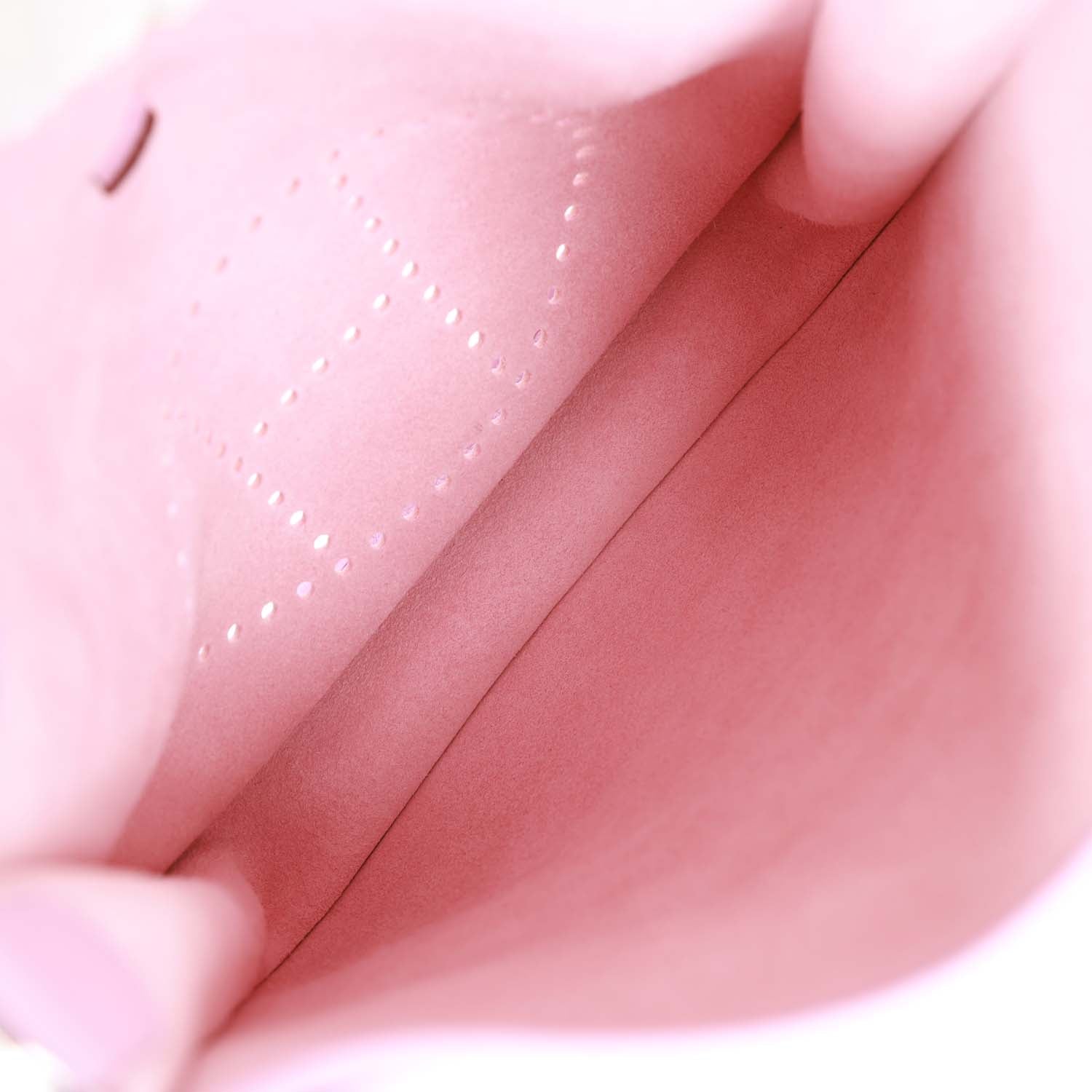 This Evelyne is in Mauve Sylvestre clemence leather with palladium hardware and has tonal stitching, pull tab top closure and Mauve Sylvestre removable canvas and leather shoulder/crossbody strap.