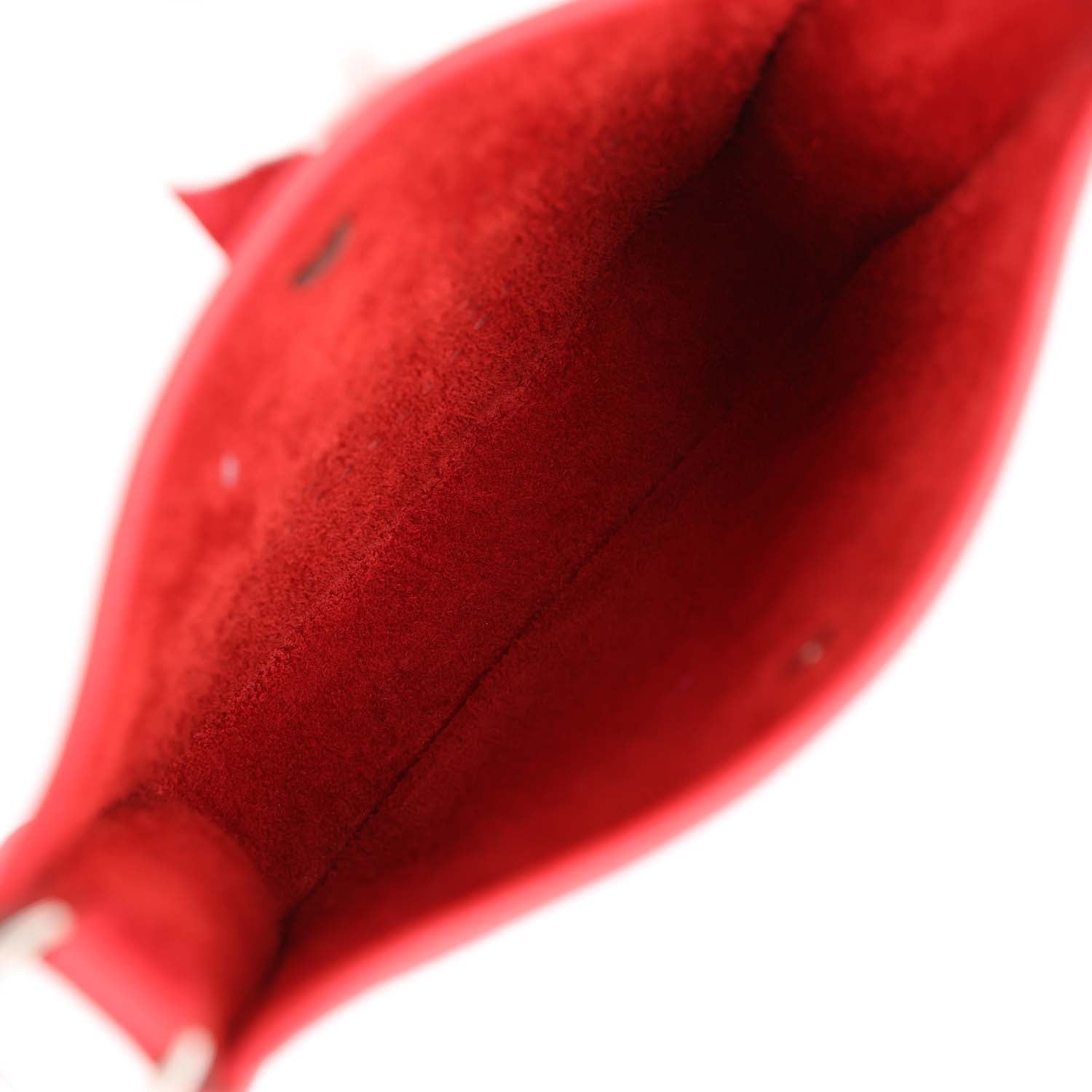 This Evelyne TPM is in Rouge Piment clemence leather with palladium hardware and features tonal stitching, pull tab top closure and a matching removable canvas and leather shoulder/crossbody strap.