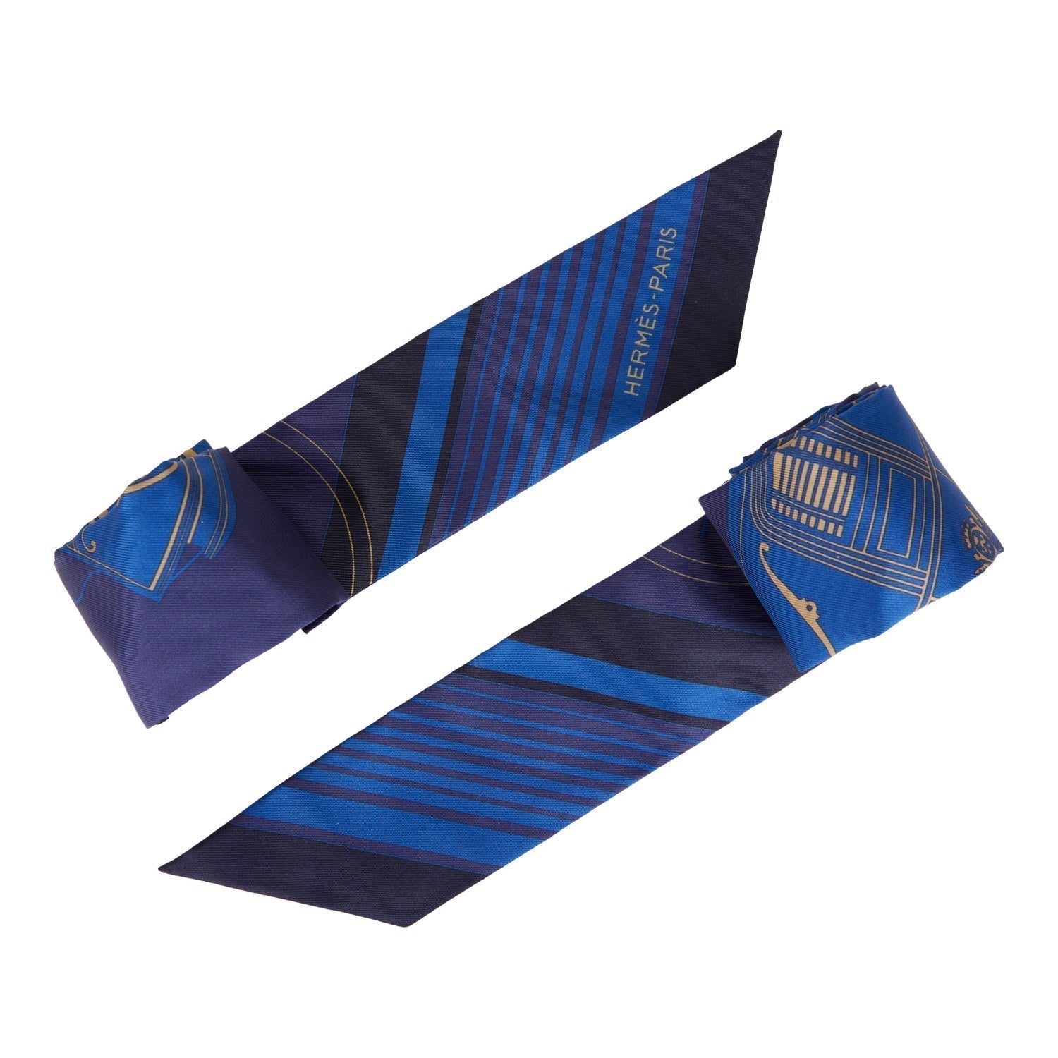 Hermes "Ex-Libris Les Parisiennes" silk twilly designed by Kiraz and Hugo Grygkar in an indigo colorway.