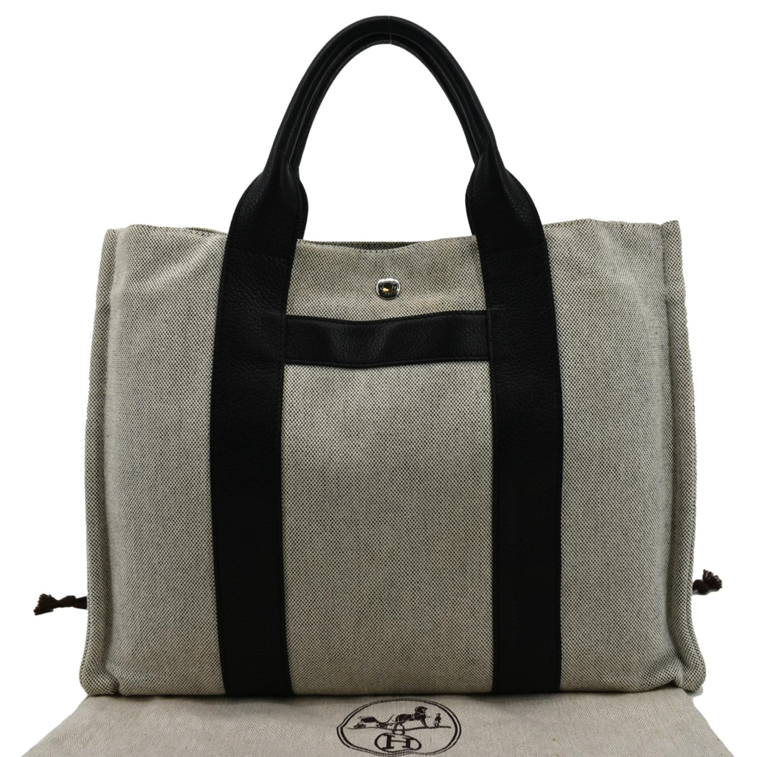 Hermes Garden Party Toile Leather Tote Bag Black/Beige
