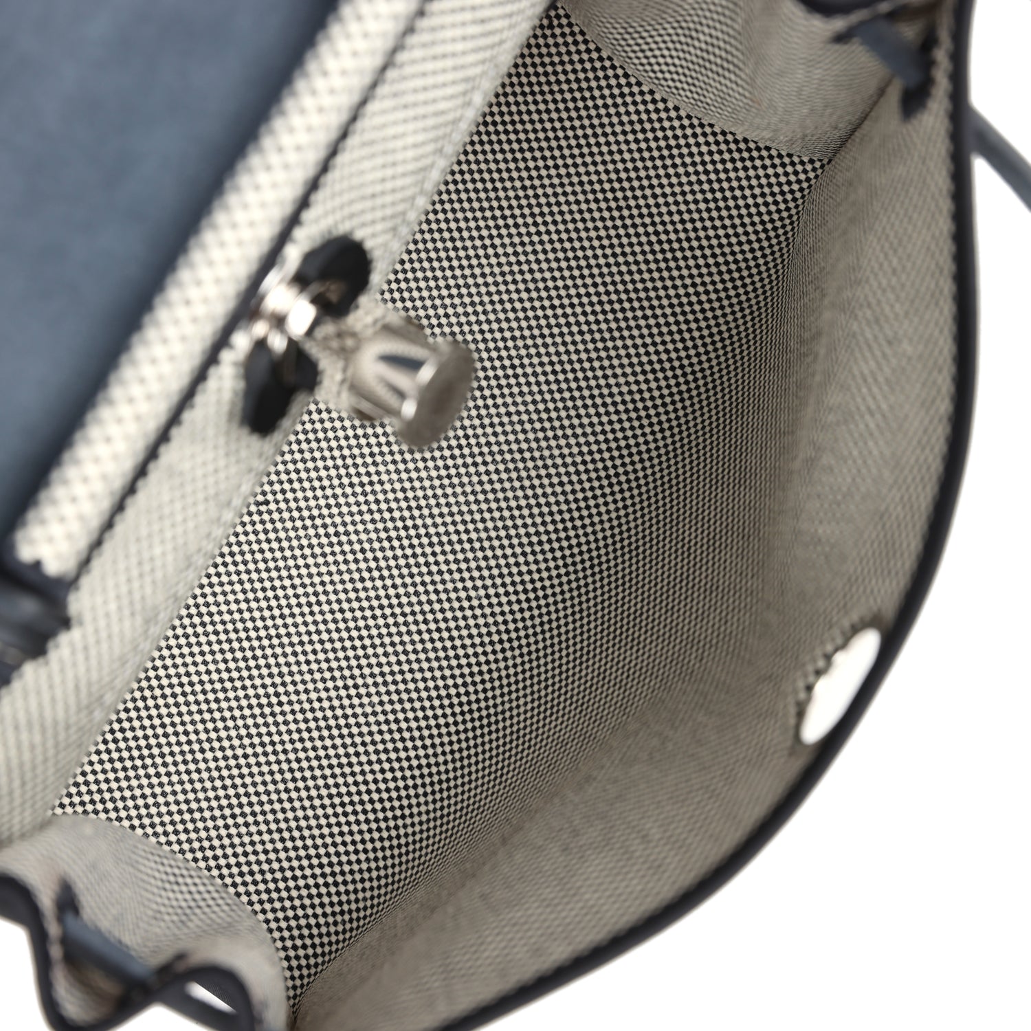 The interior is lined in Black and White Ecru Militare Toile Canvas and has a removable zip pouch.