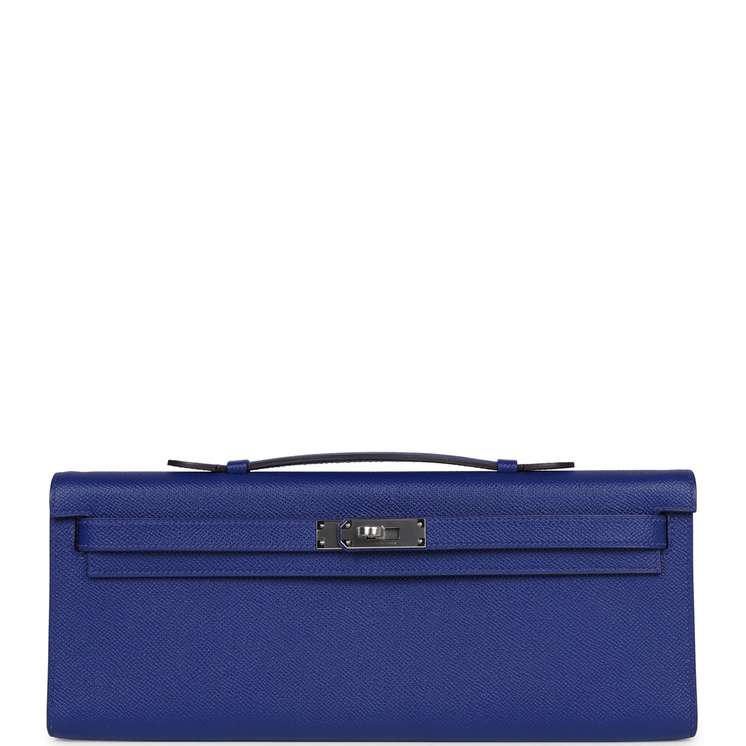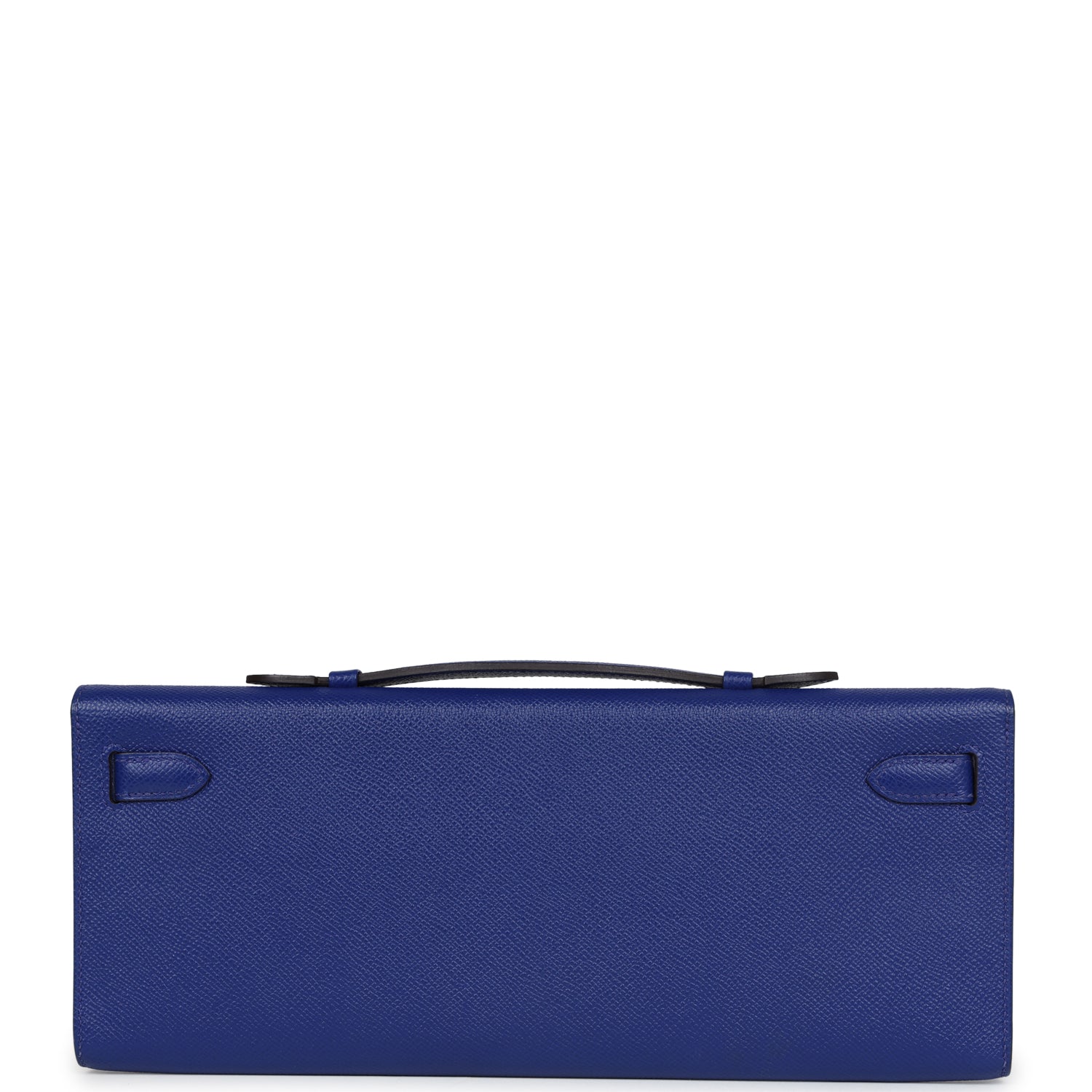 This Kelly Cut is in Bleu Electrique epsom leather with palladium hardware and has tonal stitching, two straps with front toggle closure and a top flat handle.