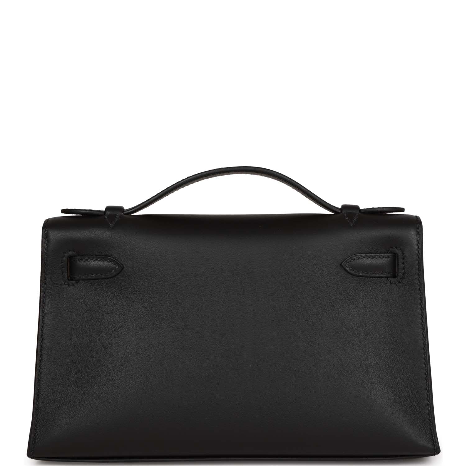 Hermes Kelly Pochette Black Swift Palladium Hardware