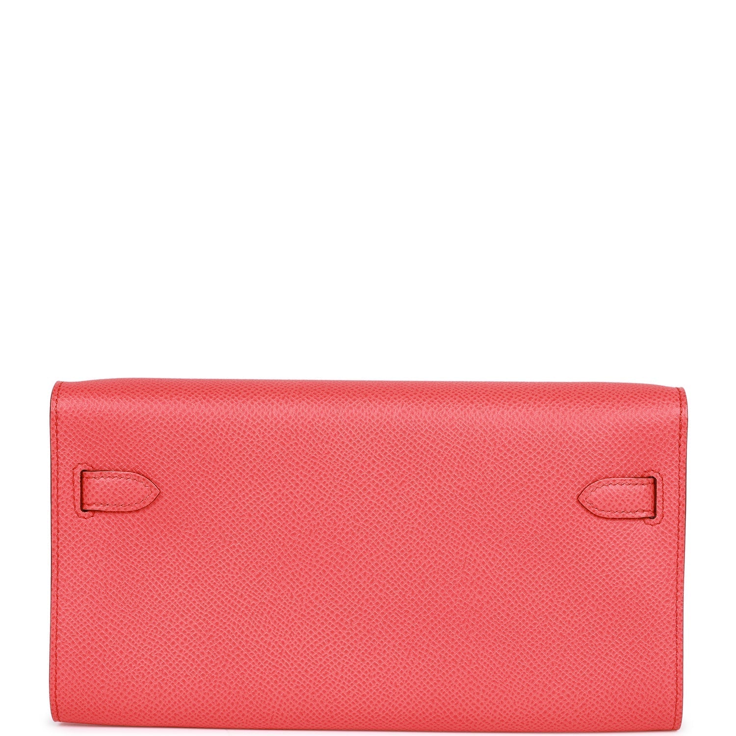 This Kelly Wallet To Go is in Rose Texas epsom leather with palladium hardware and has tonal stitching, two straps with front toggle closure and removable crossbody strap.
