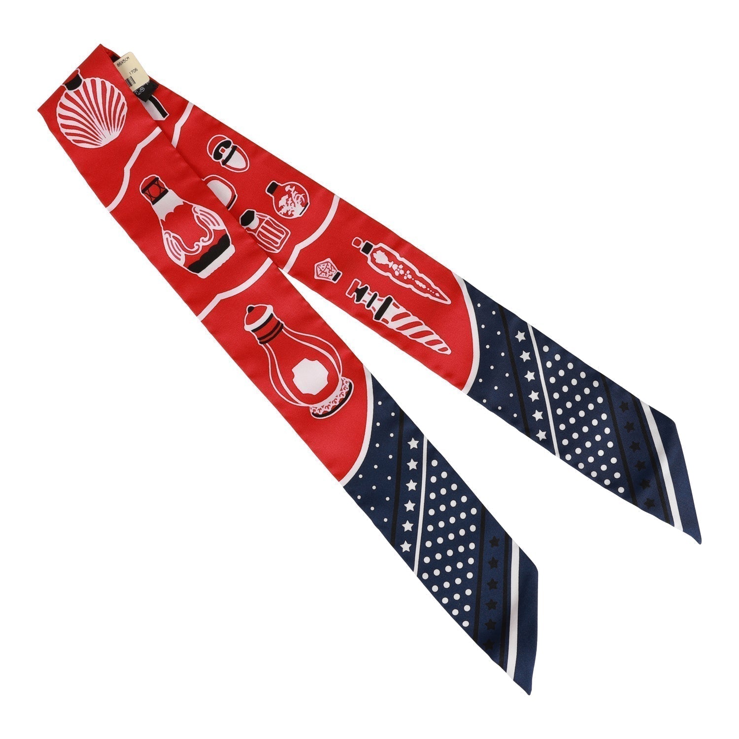 Hermes "Les Falcons" silk twilly in a rouge colorway.