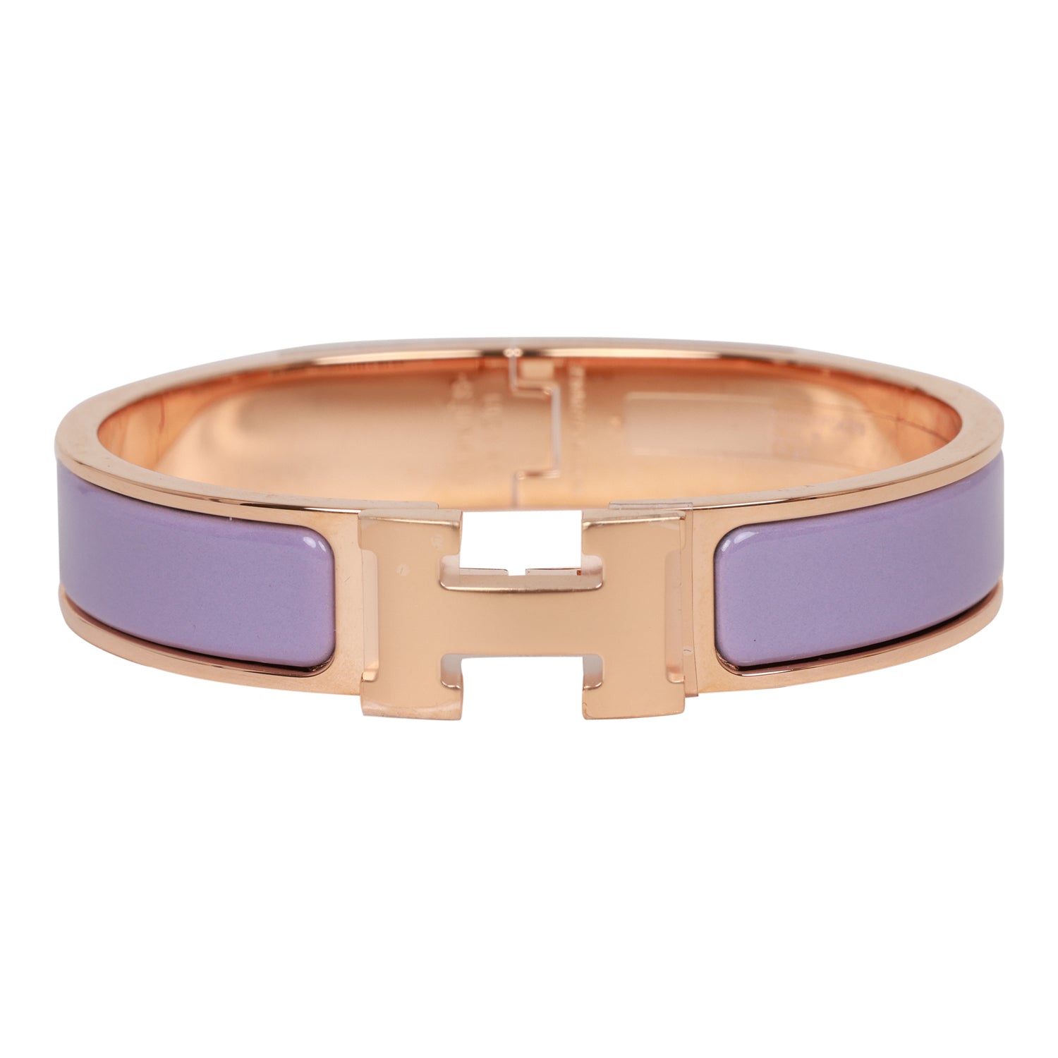 Hermes narrow Clic Clac H bracelet in Lilac enamel with rose gold plated hardware in size PM.