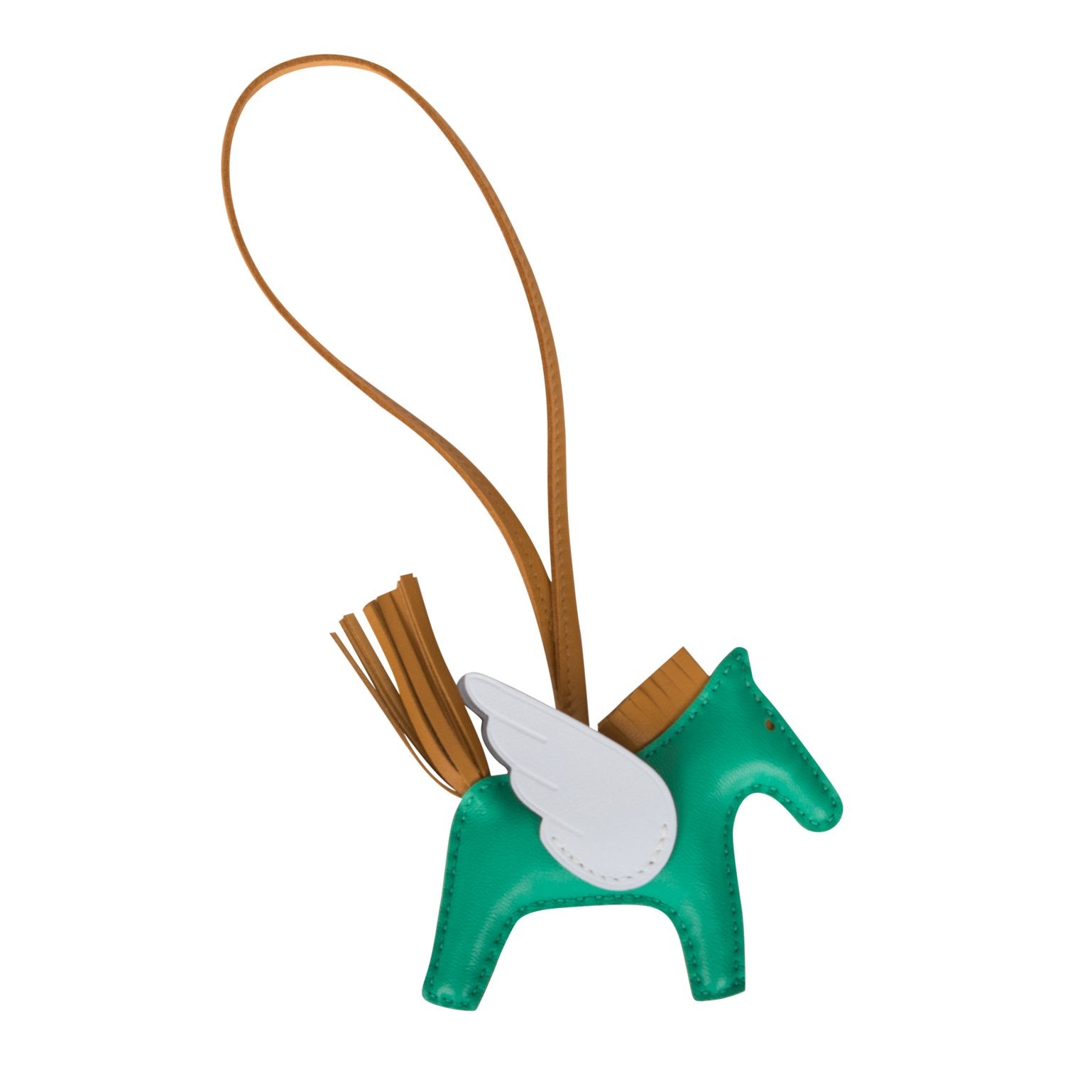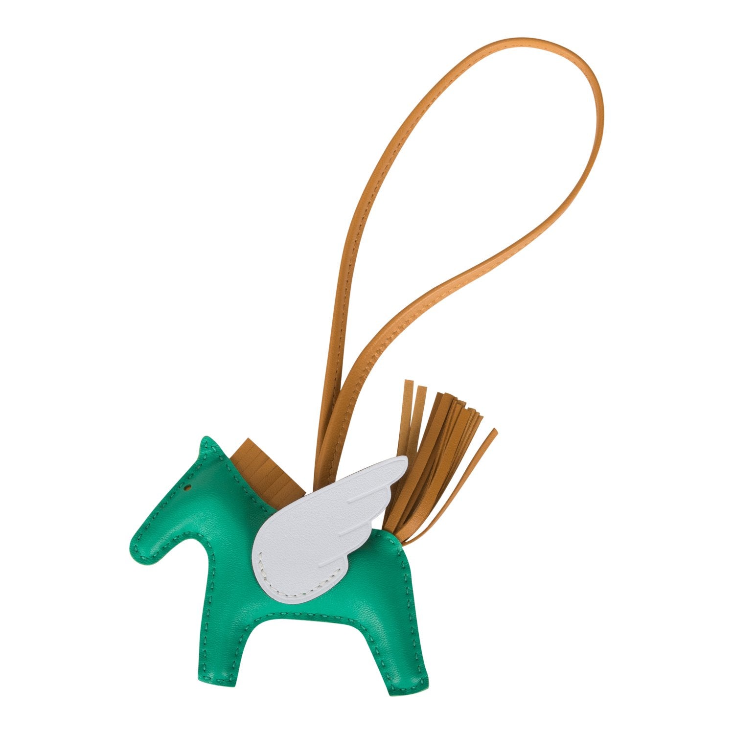 This Pegasus Rodeo bag charm is in Menthe Milo lambskin leather and accented with a Sesame mane, tail and holder and Bleu Brume wings.