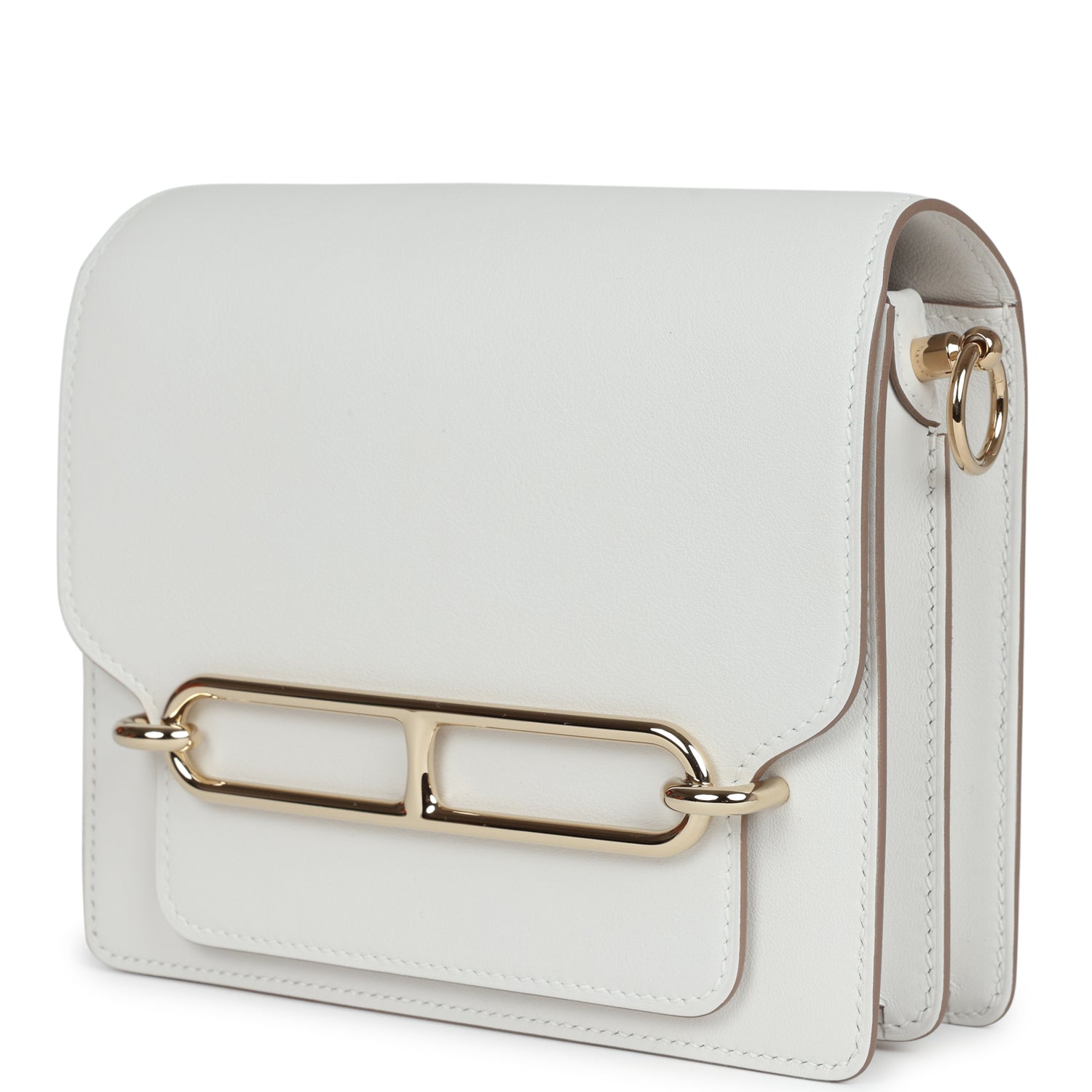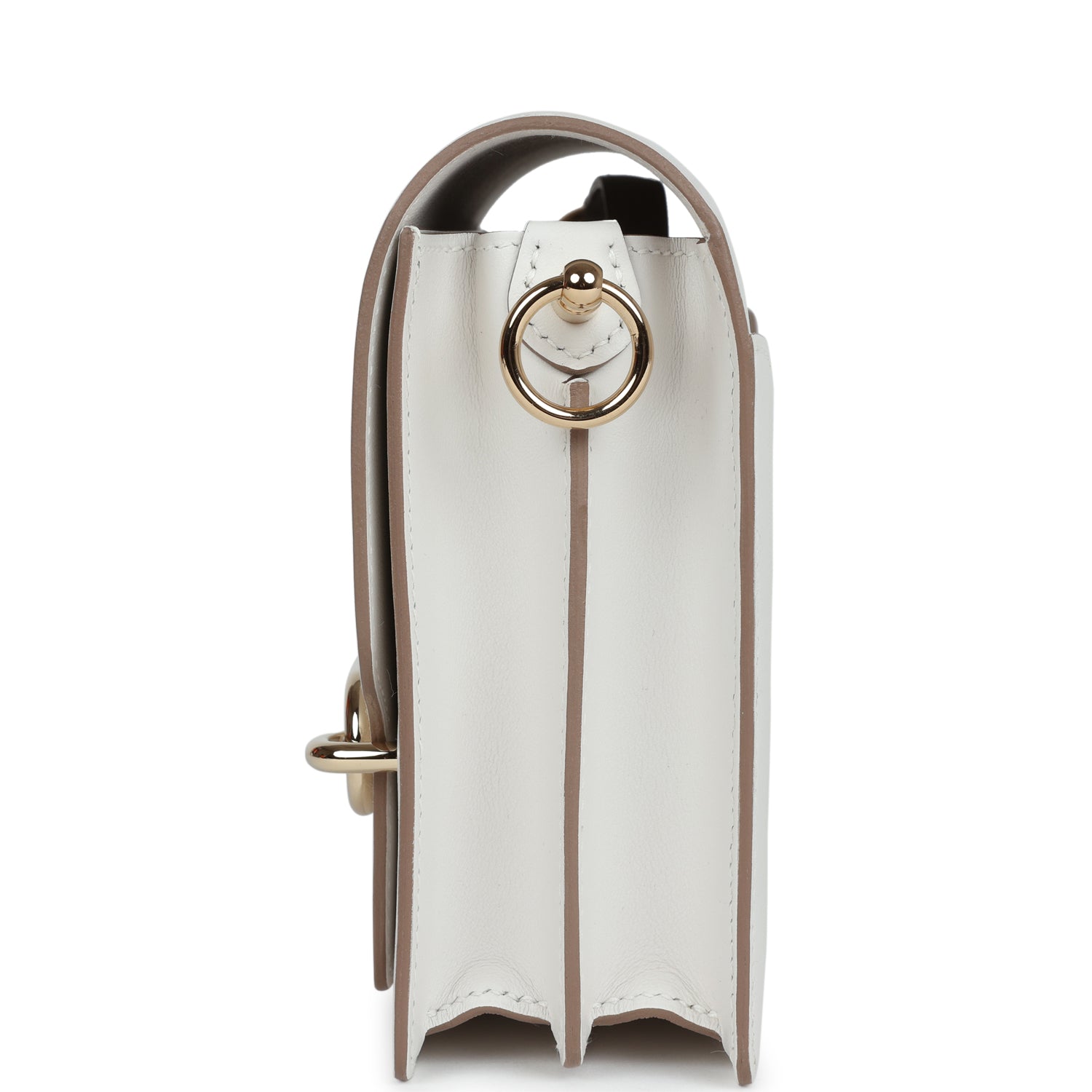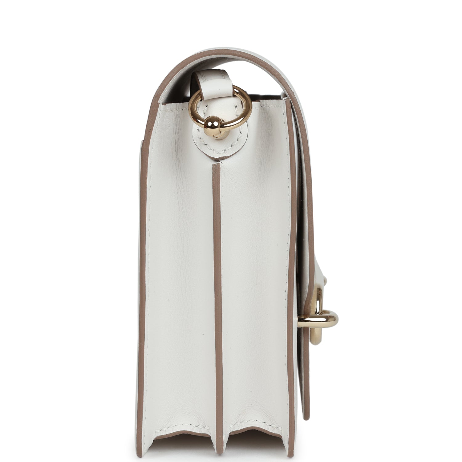 This Mini Sac Roulis is in Gris Pale swift with Permabrass hardware and features tonal stitching, front flap and crossbody strap.