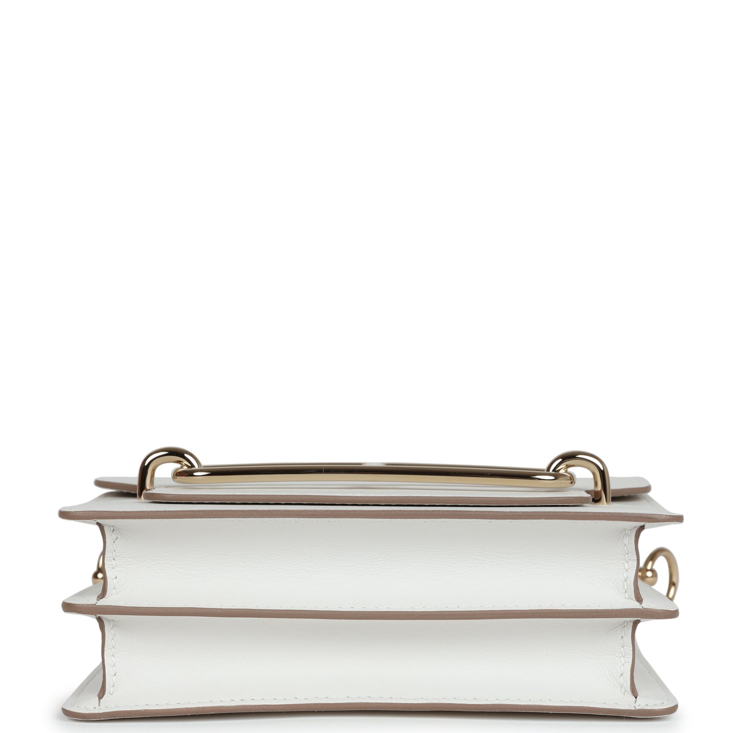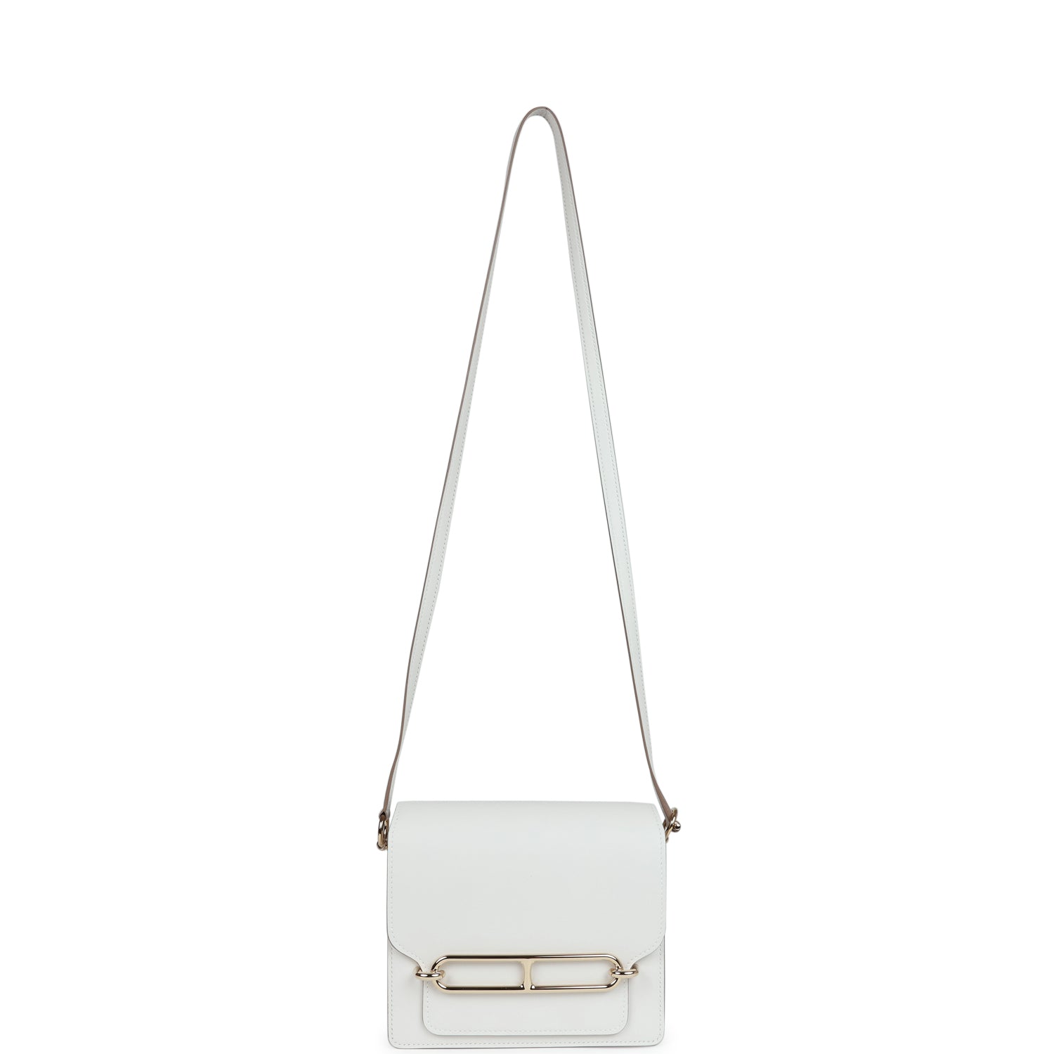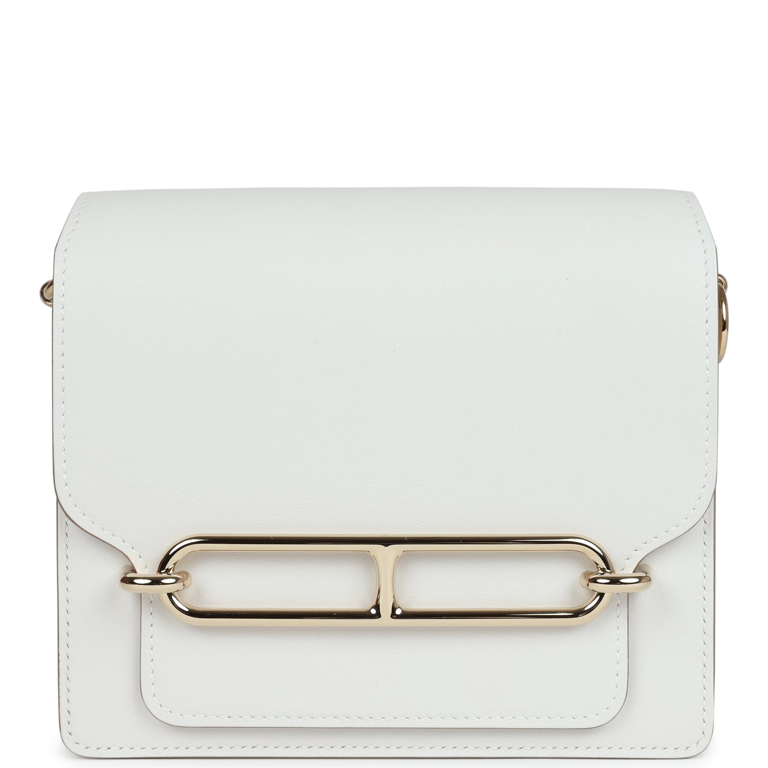 This Mini Sac Roulis is in Gris Pale swift with Permabrass hardware and features tonal stitching, front flap and crossbody strap.