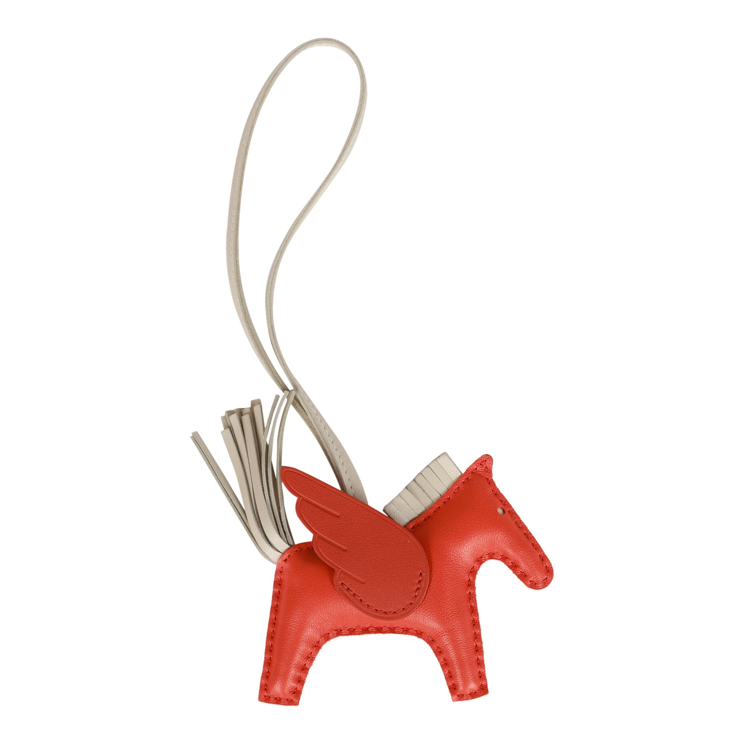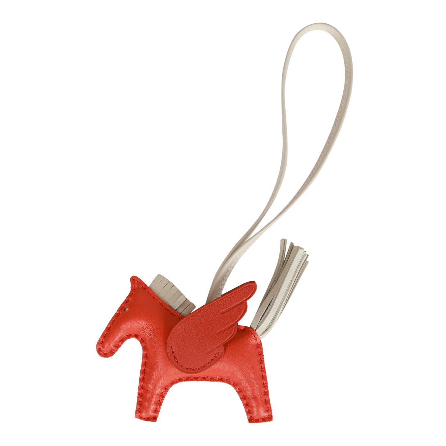 This Pegasus Rodeo bag charm is in Orange Poppy Milo lambskin leather and accented with a Craie mane, tail and holder and Terre Battue Agneau wings.