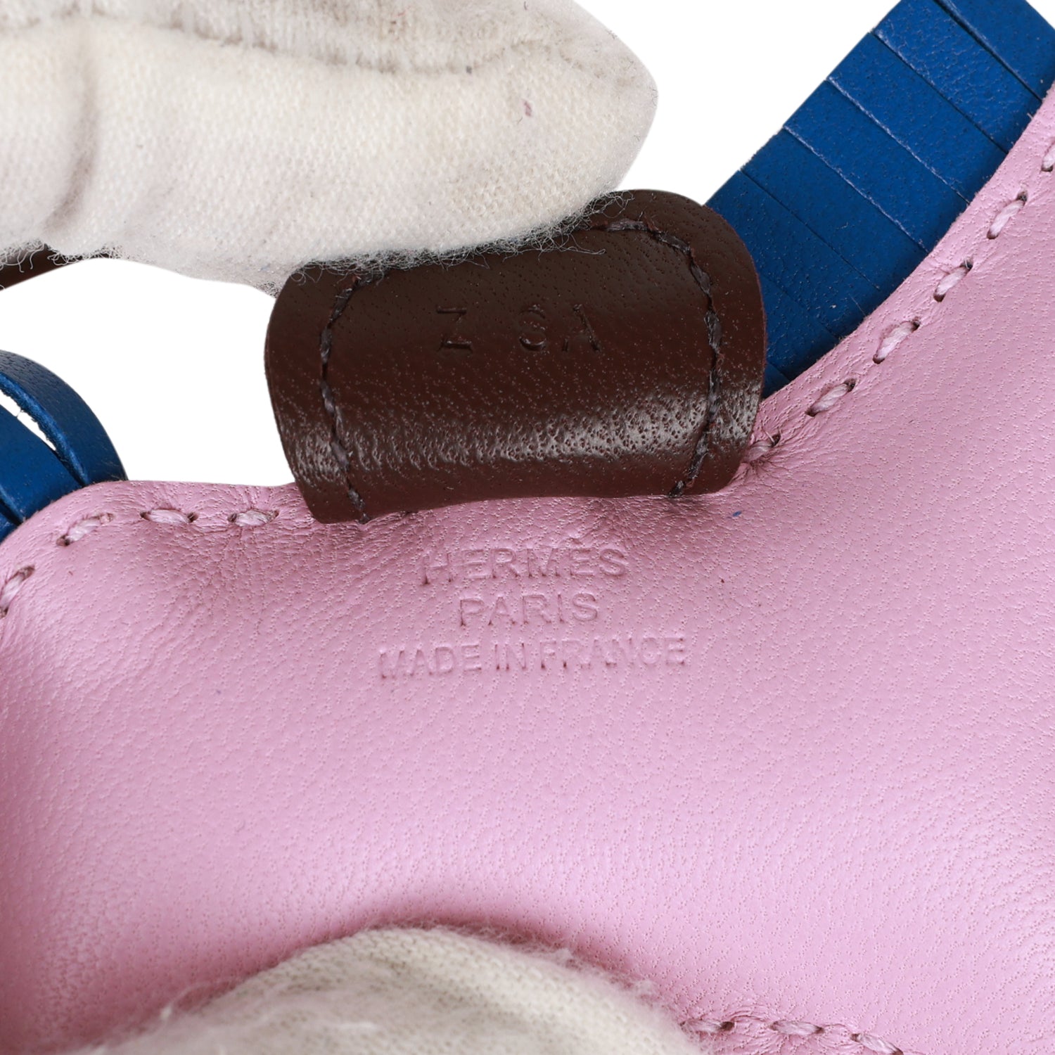 This Pegasus Horse Rodeo Bag Charm PM is in Mauve Sylvestre lambskin leather and accented with a Bleu France mane and tail and a Rouge Sellier holder and saddle.