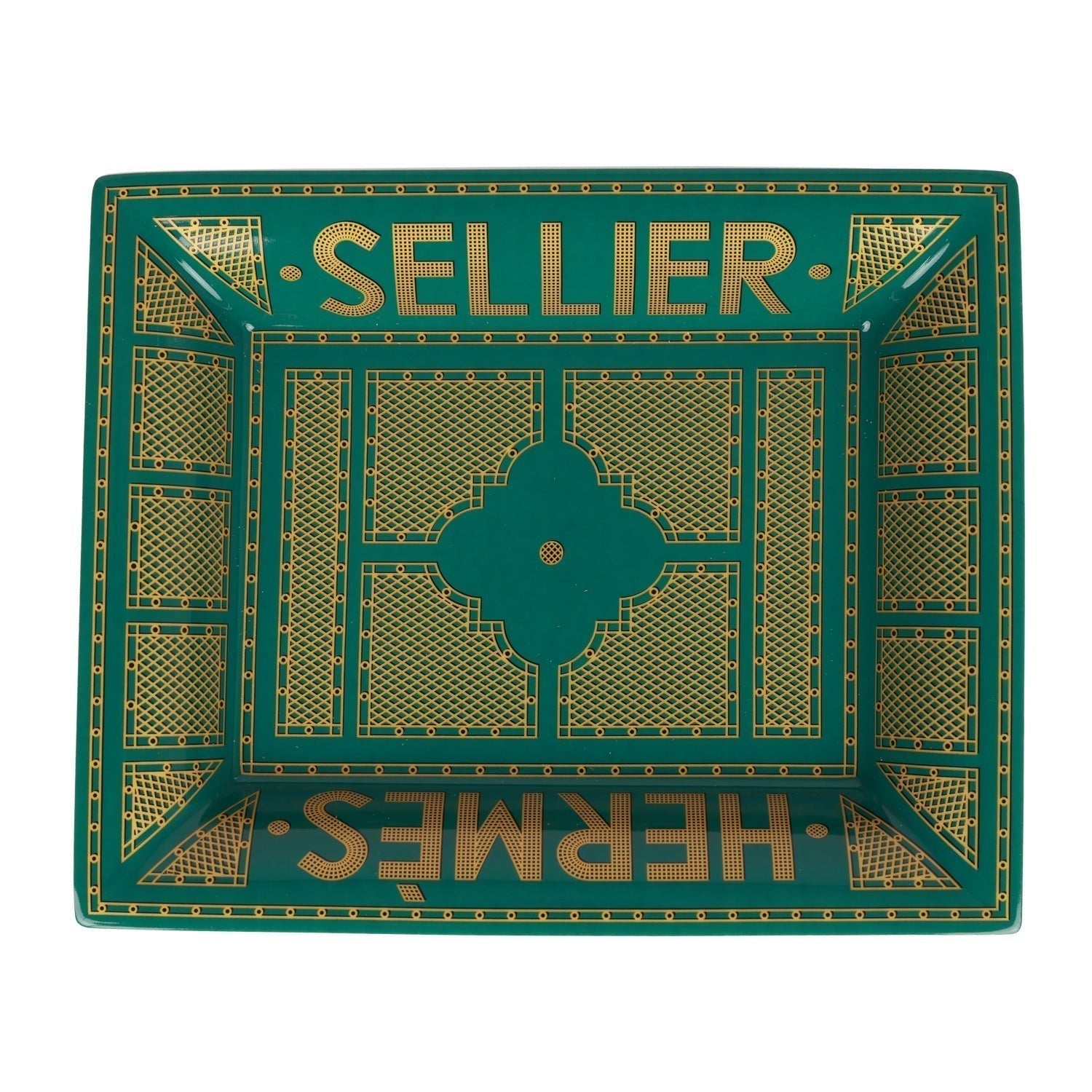 Hermes "Sellier" change tray of porcelain in green.