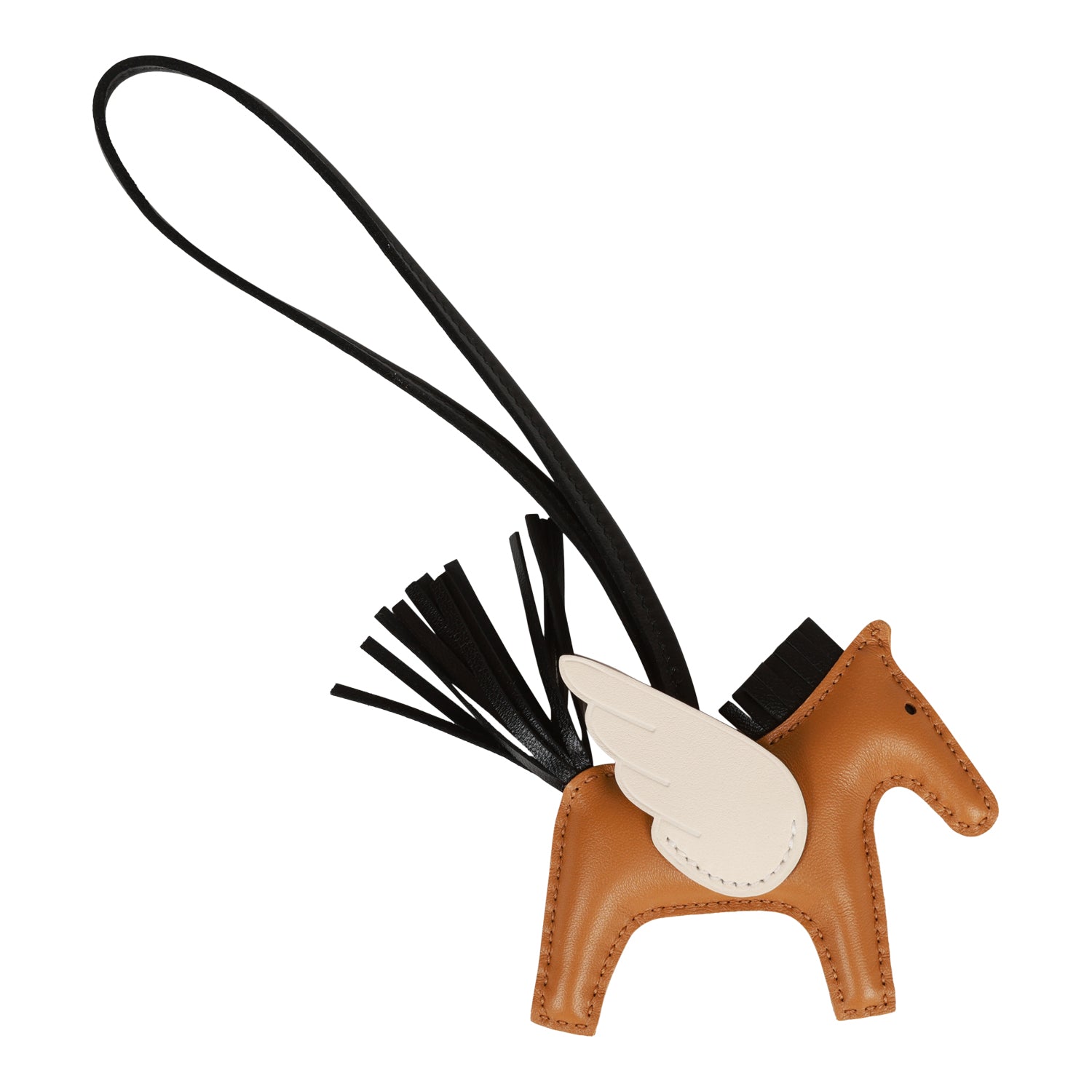 This Pegasus Rodeo bag charm is in Sesame Milo lambskin leather and accented with a Black mane, tail and holder and Nata wings.