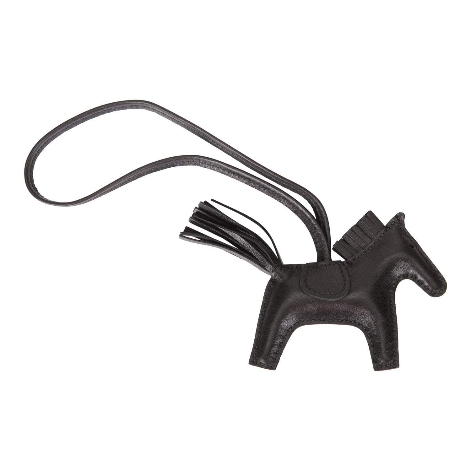 This charm is made of Black Milo lambskin leather with a matching mane, saddle, tail and holder.