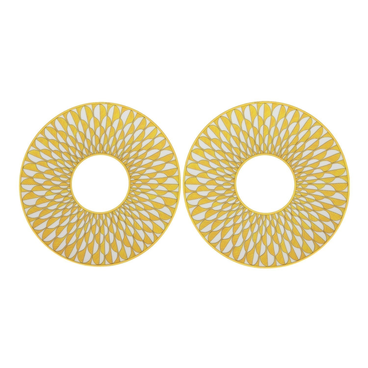 Two Hermes "Soleil D'Hermes" Dinner plates in yellow and white porcelain.