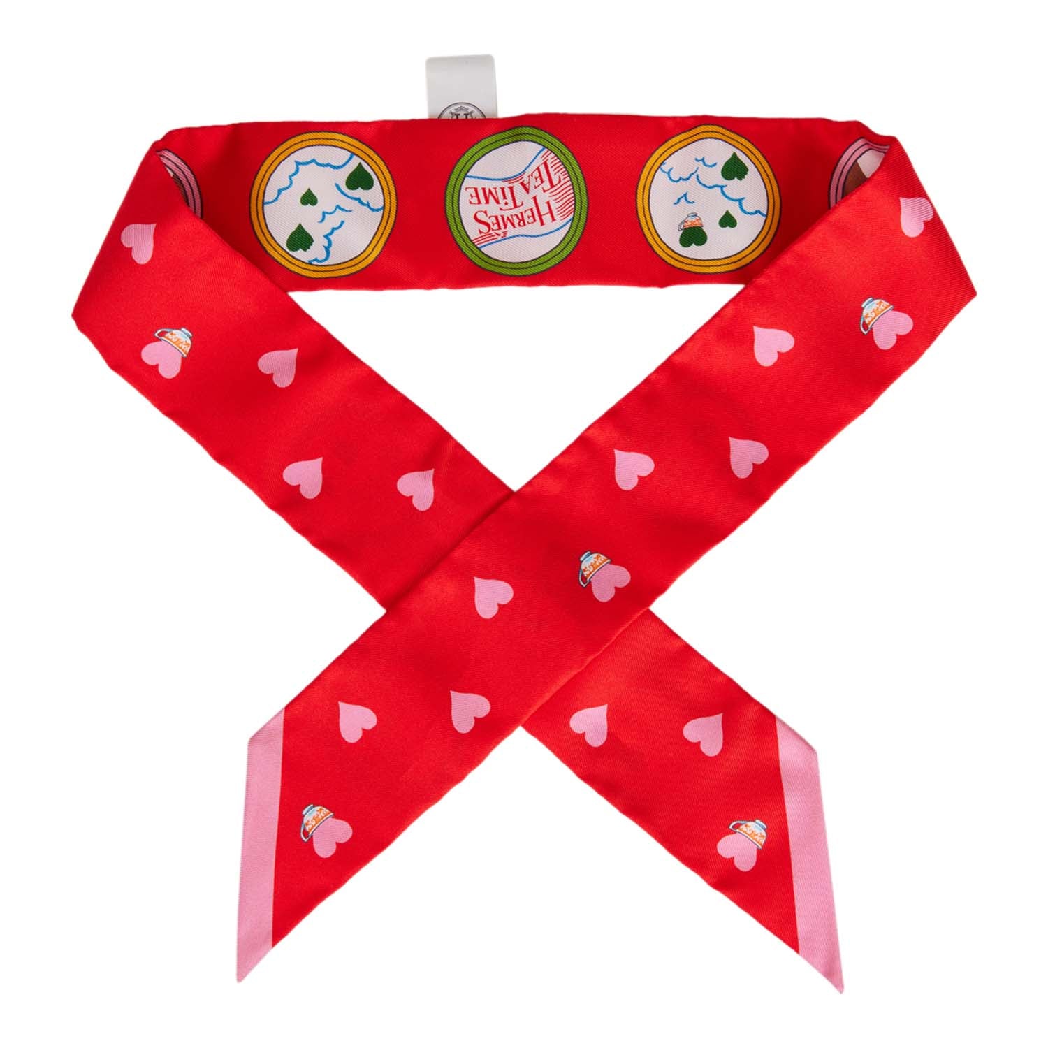 Hermes "Tea Time" Rouge Vif Silk Twilly Pair