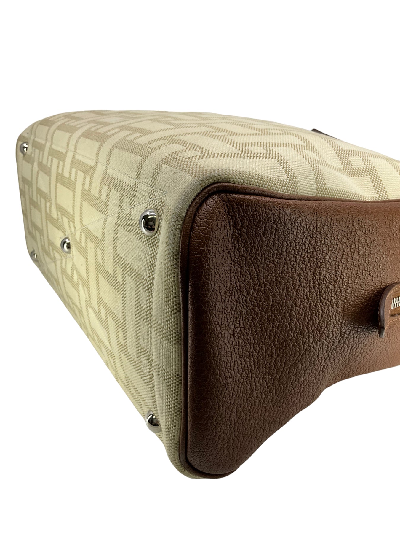 Hermes Victoria Printed Toile And Brown Leather Bag