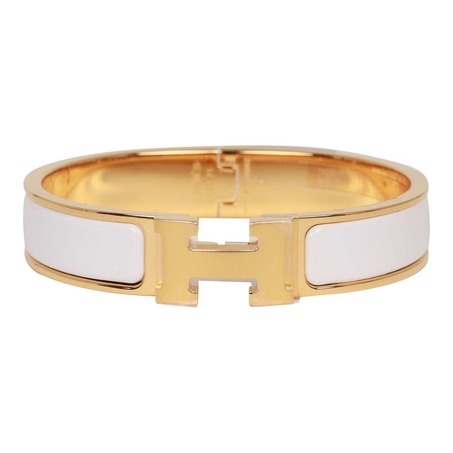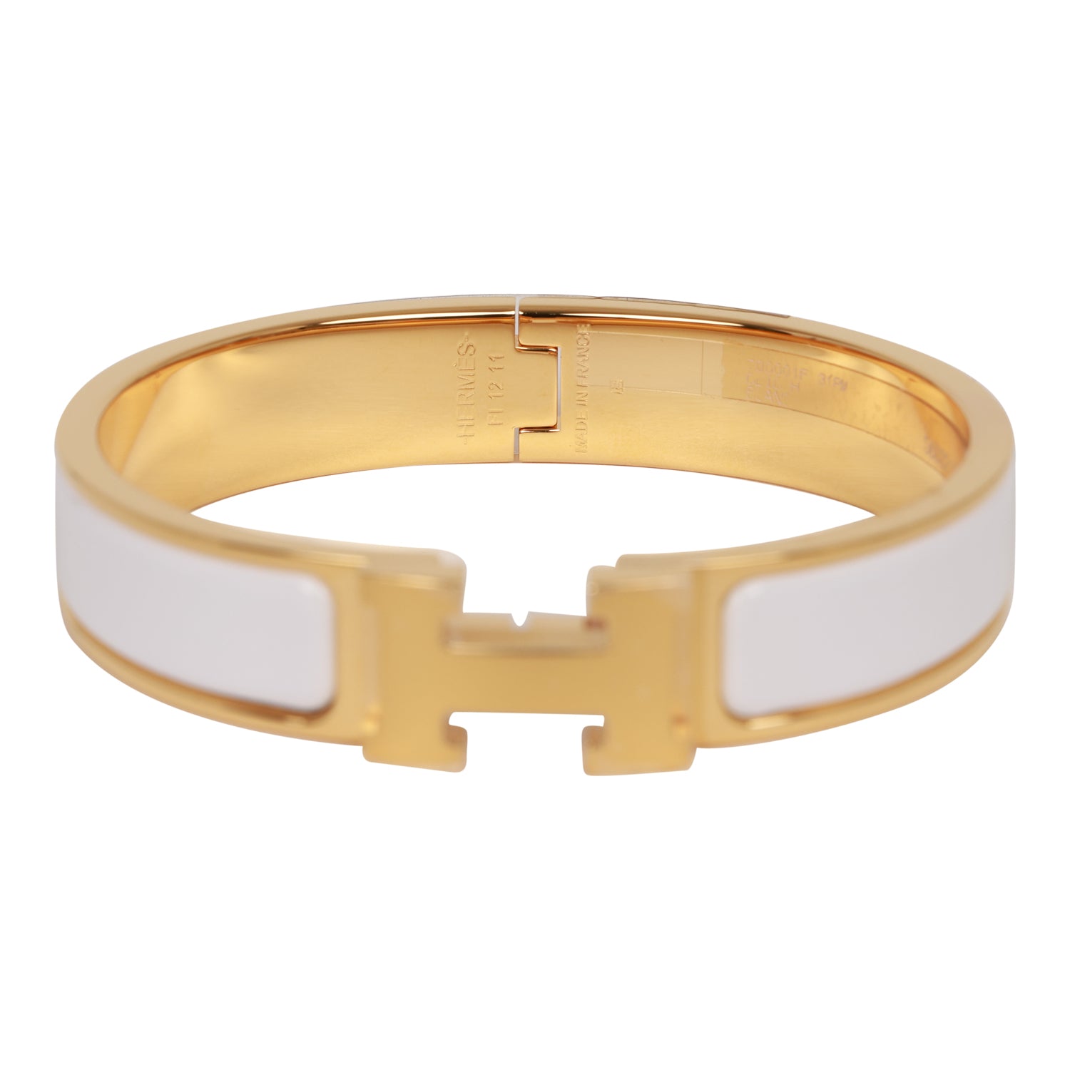 Hermes White Clic Clac H Narrow Enamel Bracelet PM GHW