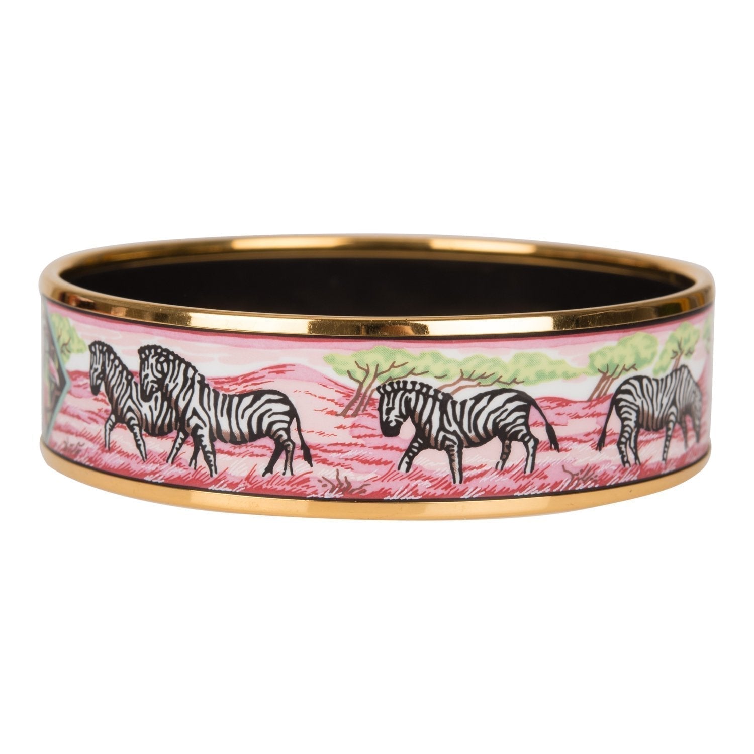 This bracelet is in printed enamel with gold plated hardware.