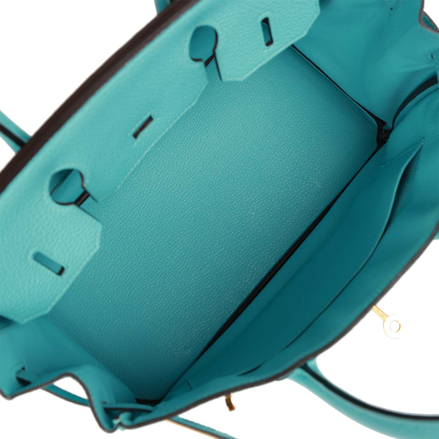 Top quality Hermes Birkin 30 Bleu Atoll Clemence Gold Hardware