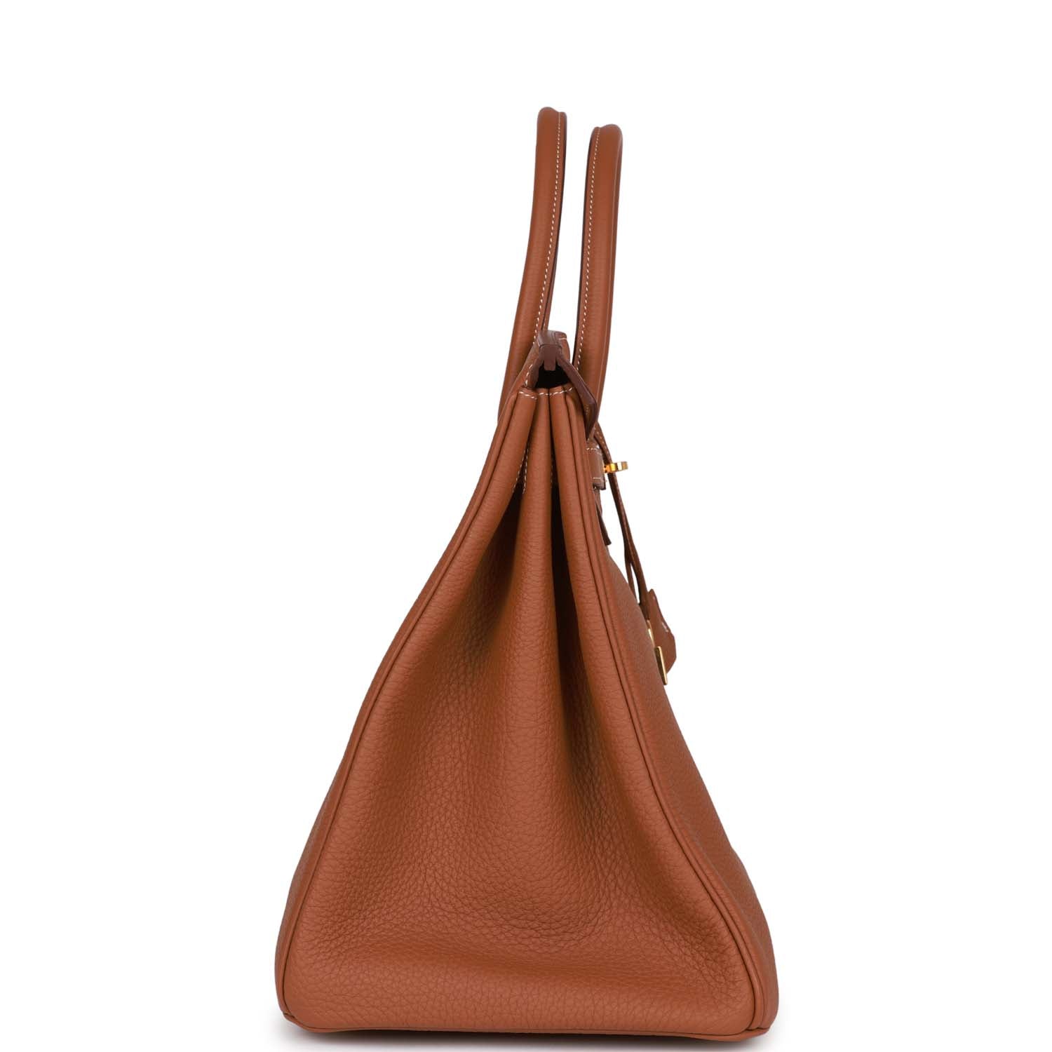 This Birkin is in Gold togo leather with gold hardware and has contrast stitching, two straps with front toggle closure, clochette with lock and two keys and double rolled handles.