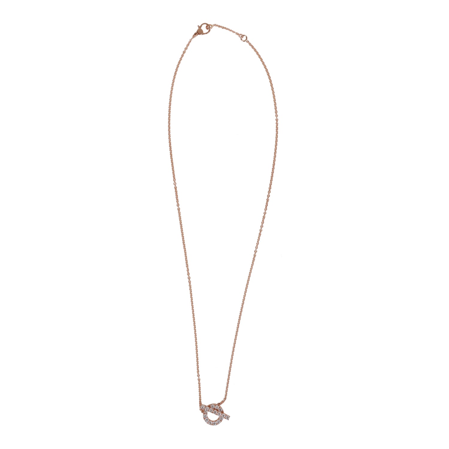 This Necklace is in 18k rose gold San Coloris with bar and ring motif pendant set and round brilliant cut diamonds.
