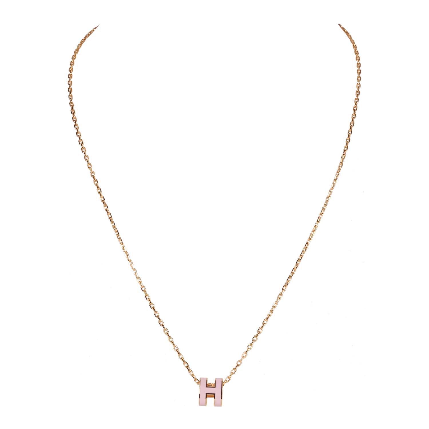This Hermes Pop H Lacquered Necklace is in Rose Dragee with a lobster clasp closure.
