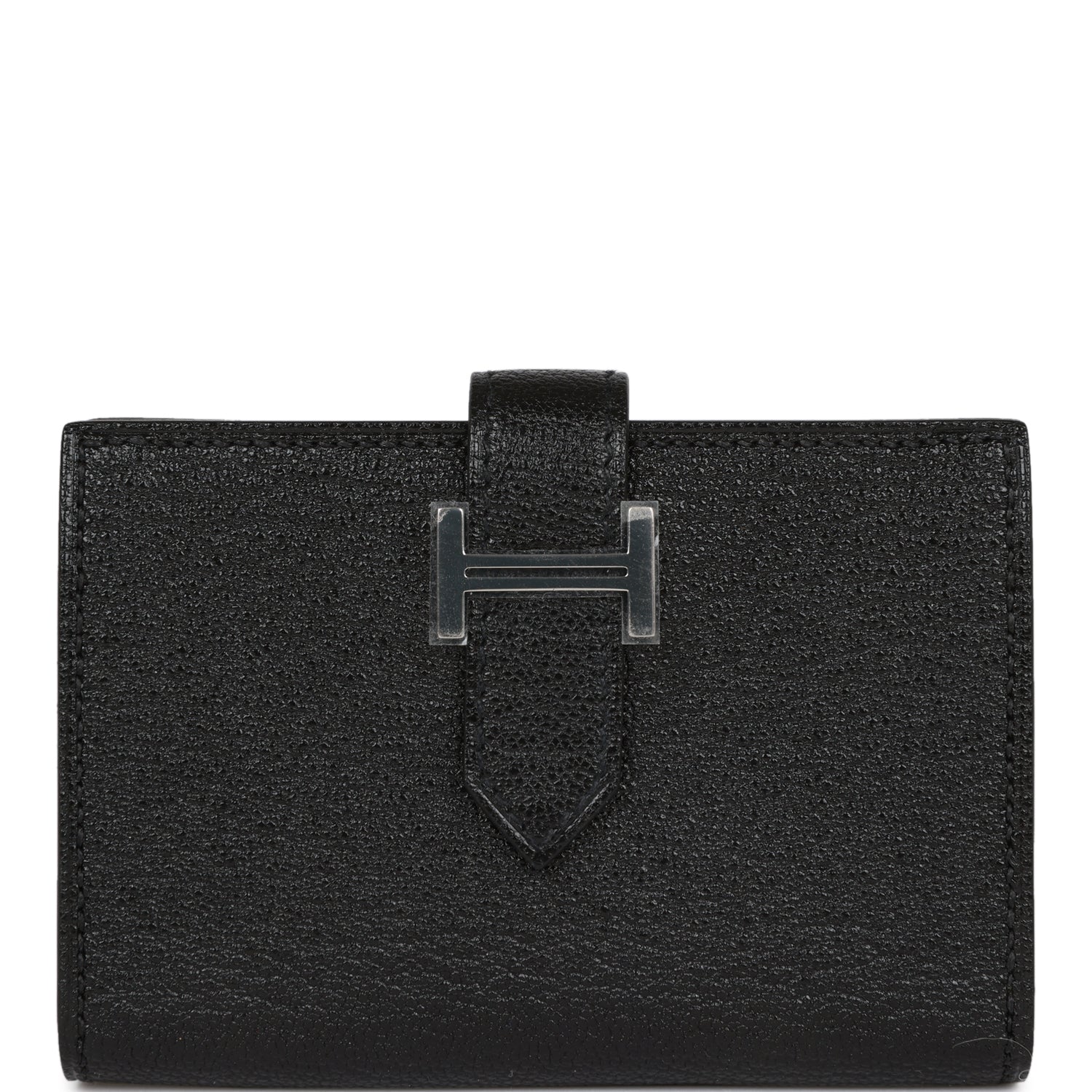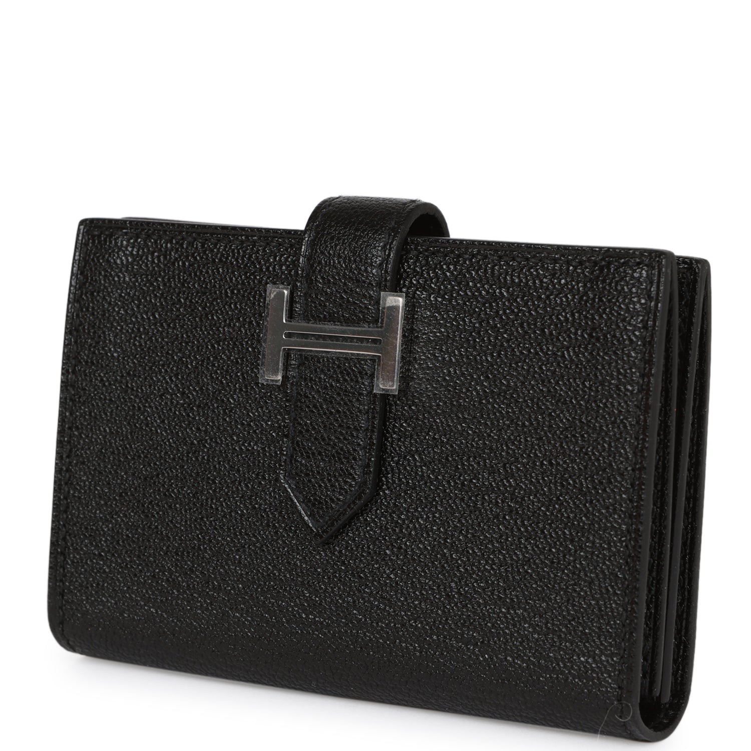 This Bearn Cardholder is in Black chevre leather with palladium hardware, tonal stitching, and a palladium H tab closure.