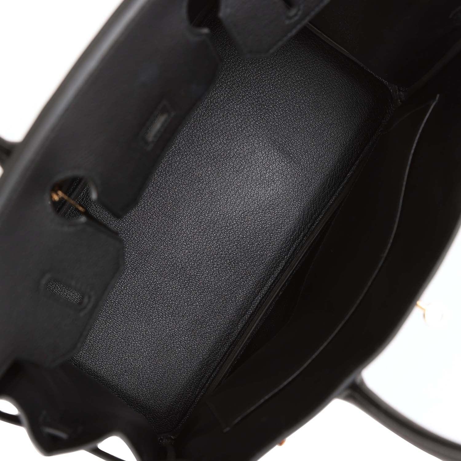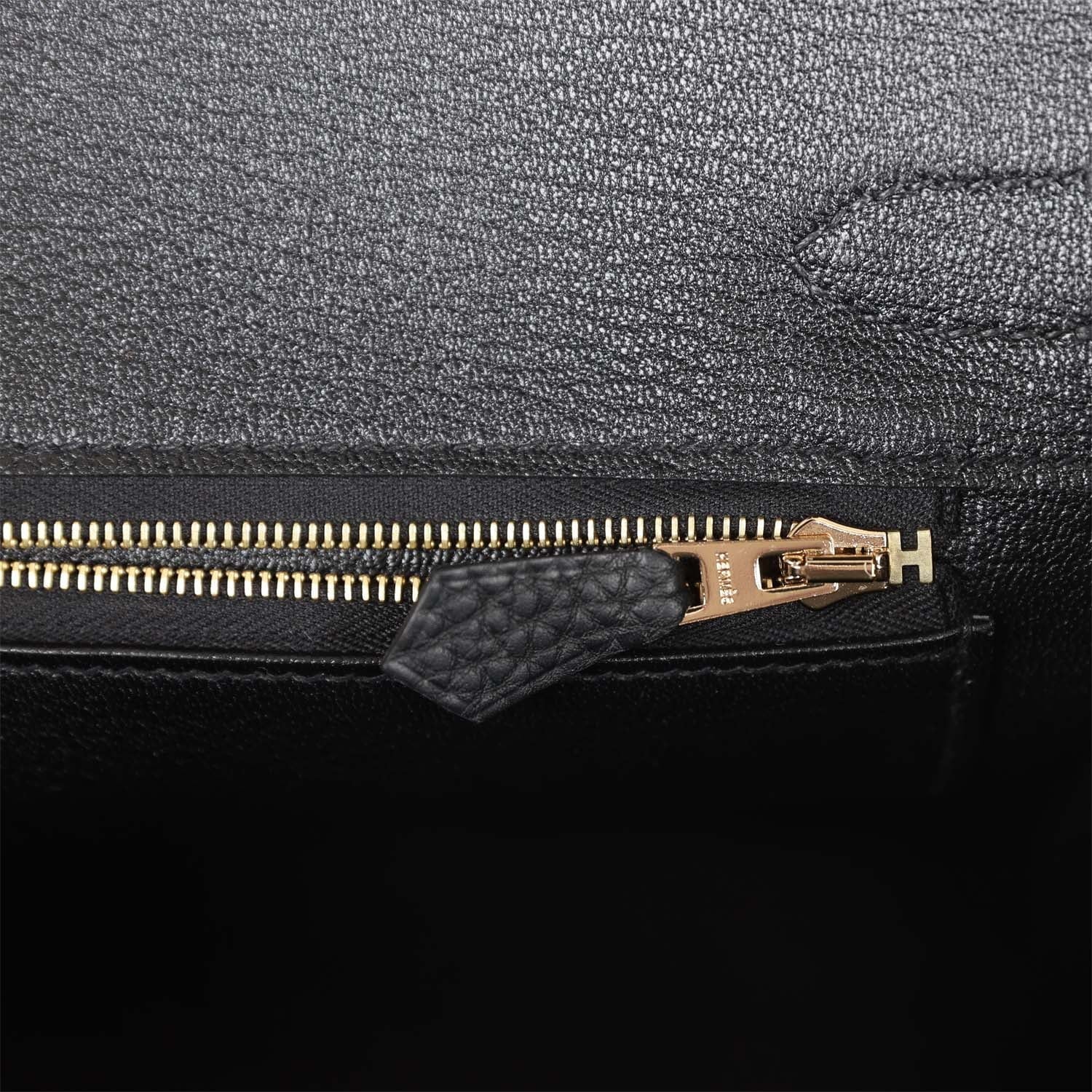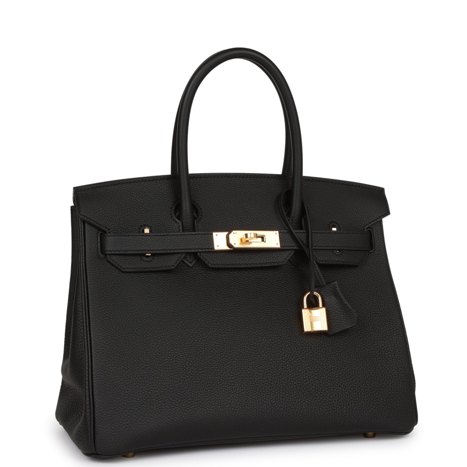 This Birkin is in Black togo leather with gold hardware and has tonal stitching, front flap, two straps with center toggle closure, clochette with lock and two keys, and double rolled handles.