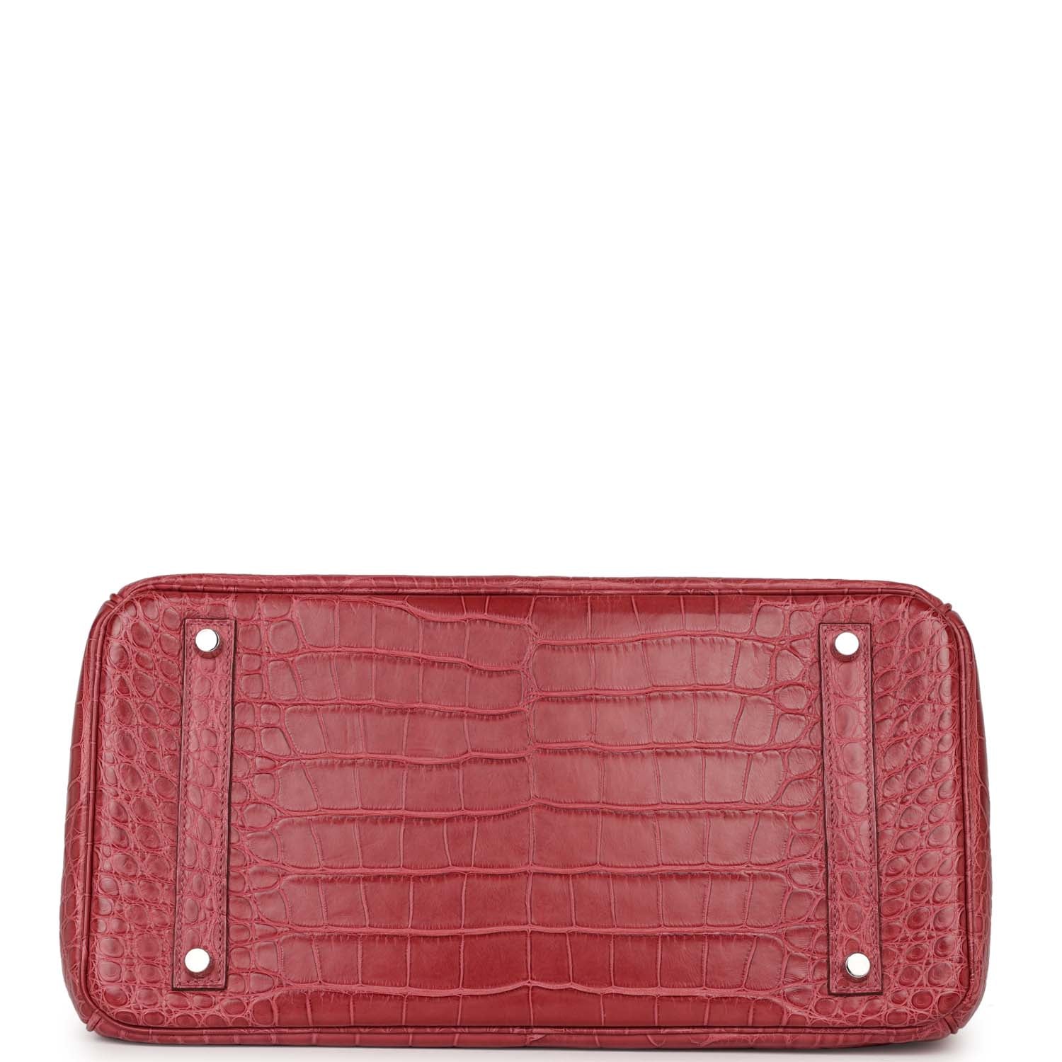 This Birkin is of Bois de Rose Matte Alligator Mississippiensis with palladium hardware and features tonal stitching, front flap, two straps with center toggle closure, clochette with lock and two keys, and double rolled handles.