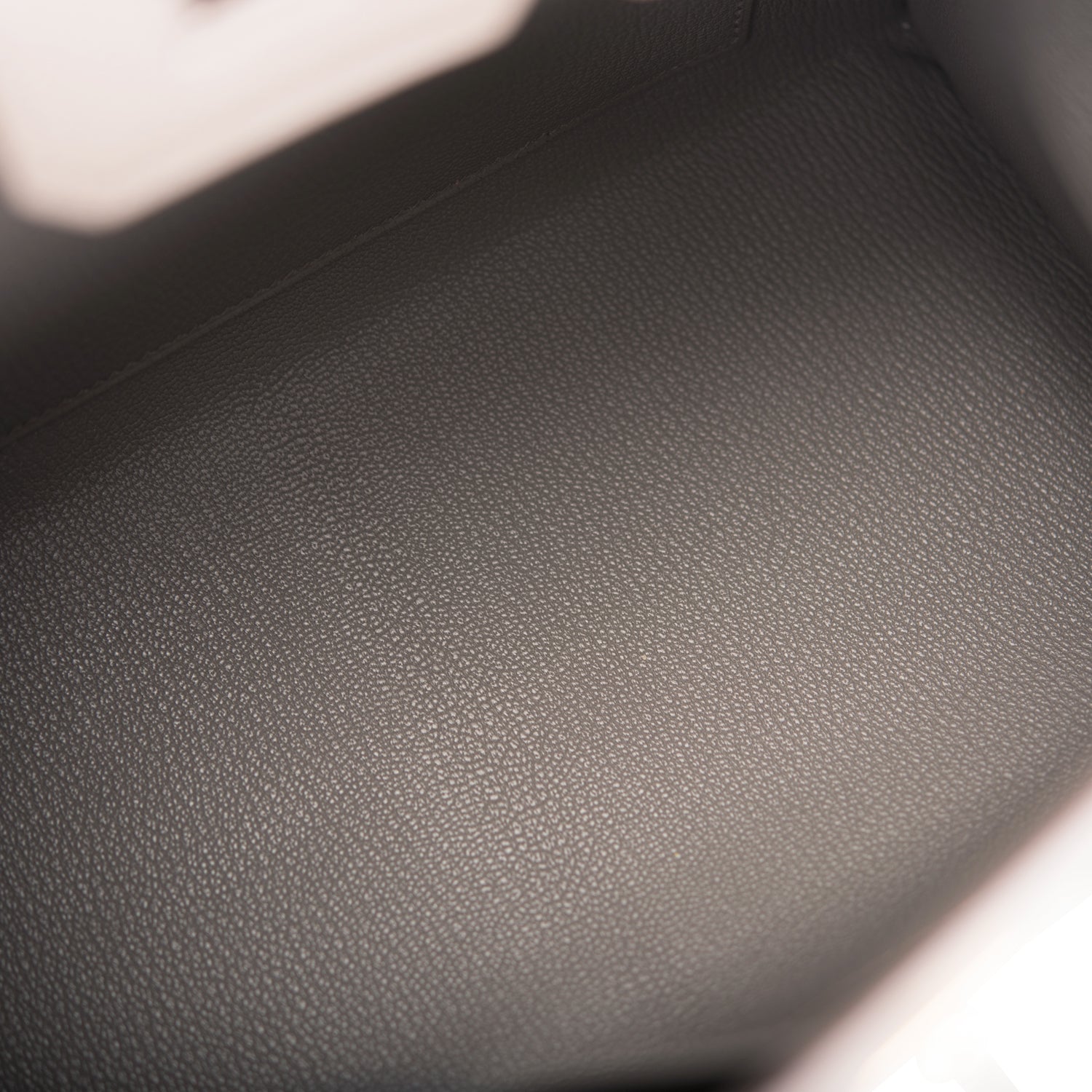 The interior is lined with Etain chevre and has one zip pocket with an Hermes engraved zipper pull and an open pocket on the opposite side.