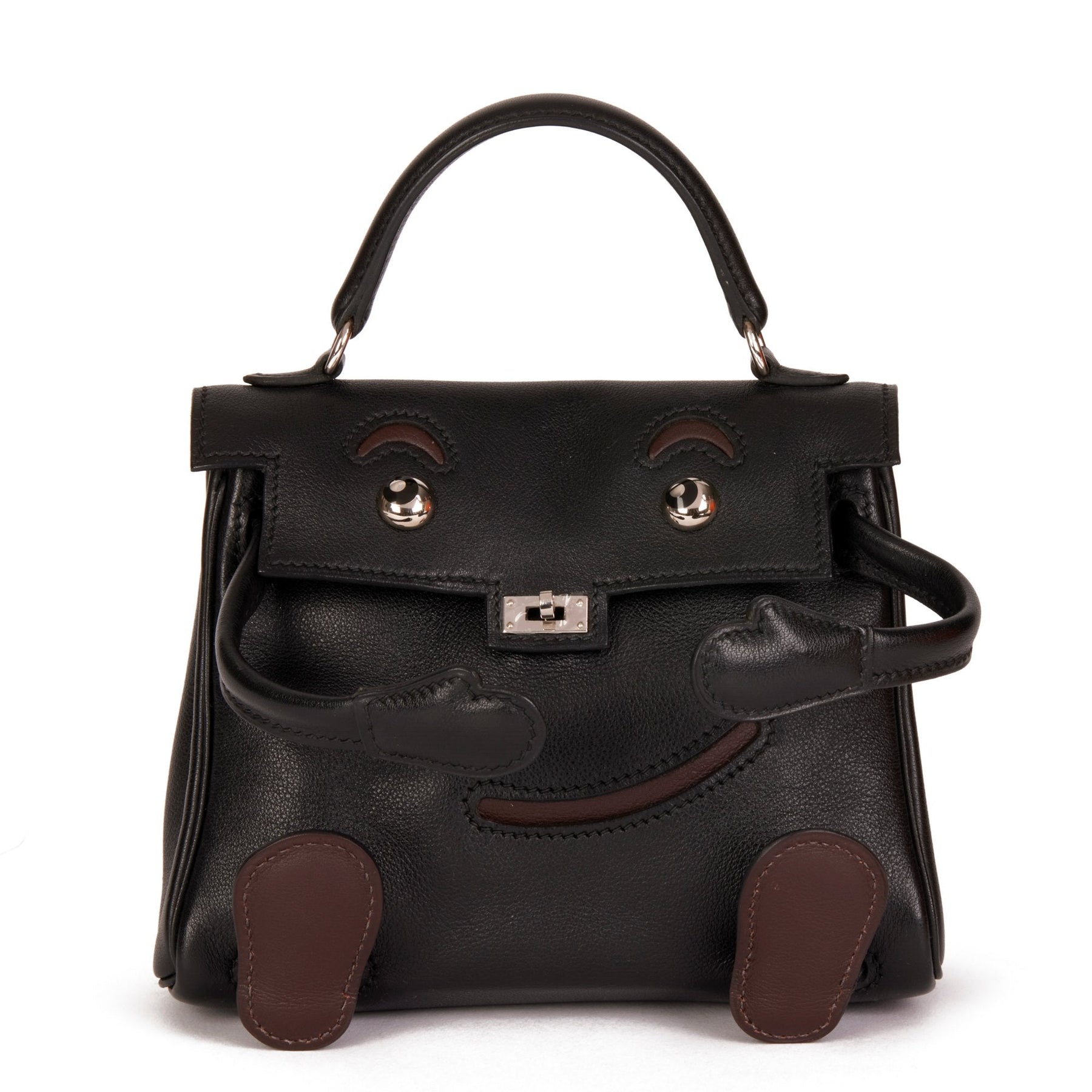 Hermes Black & Chocolate Gulliver Leather Vintage Kelly Quelle Idole Doll Top Handle Bag
