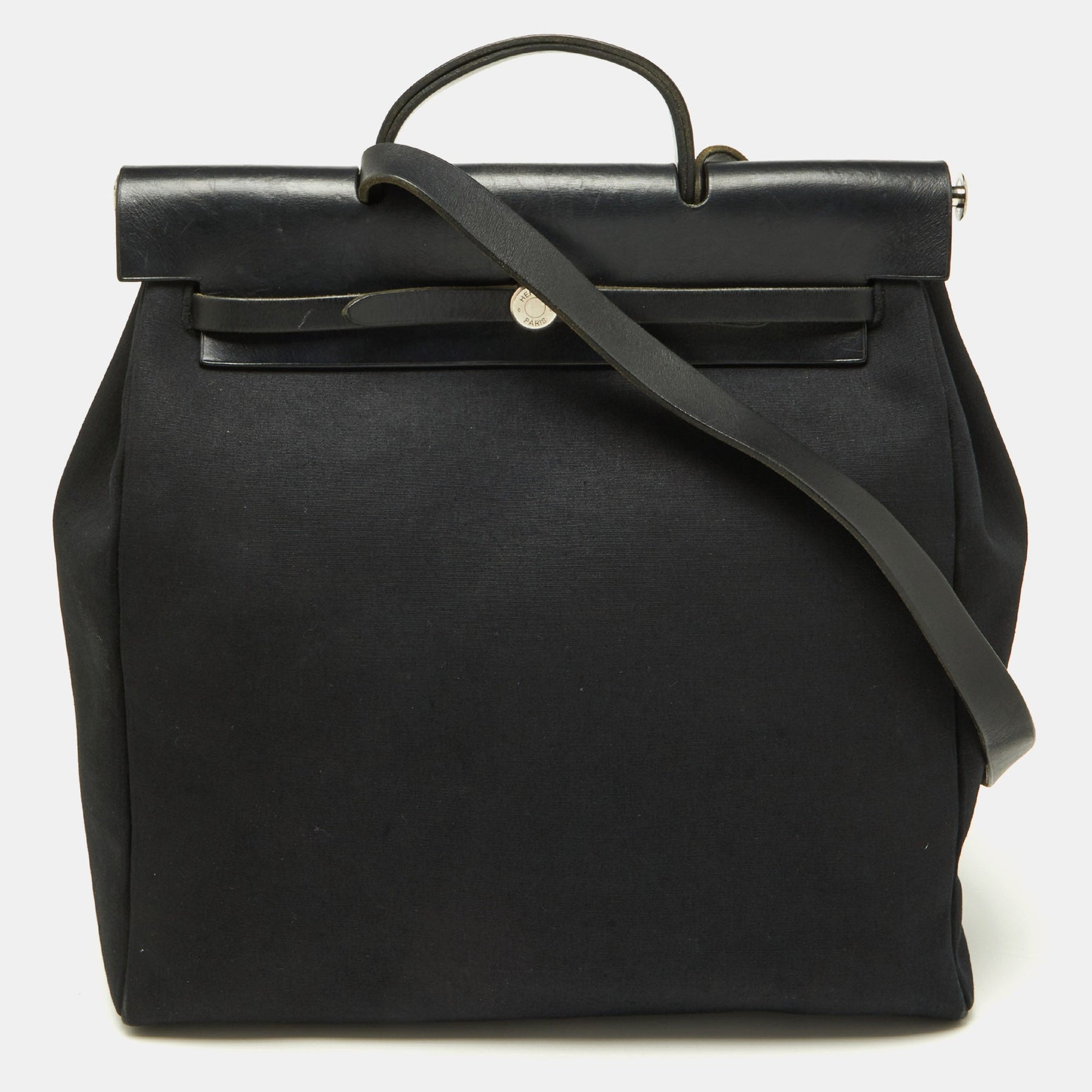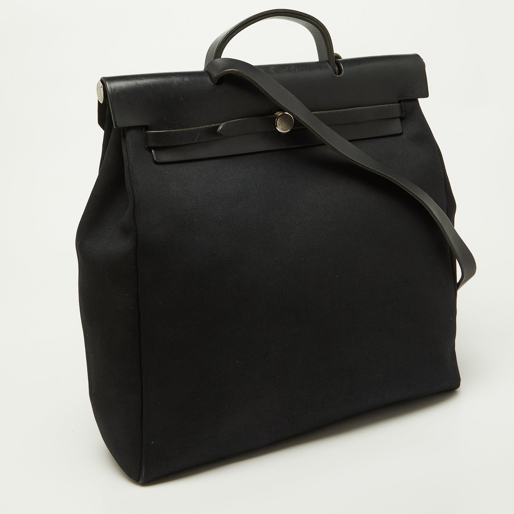 HERMES Black Canvas and Leather Herbag 39 Bag