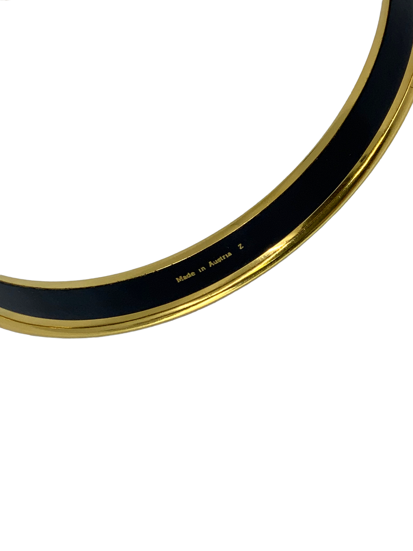 We the ity of this stunning Hermes Printed Enamel Narrow Bracelet 65 crafted from beautiful black and multicolored enamel with a gold-tone metal rim.