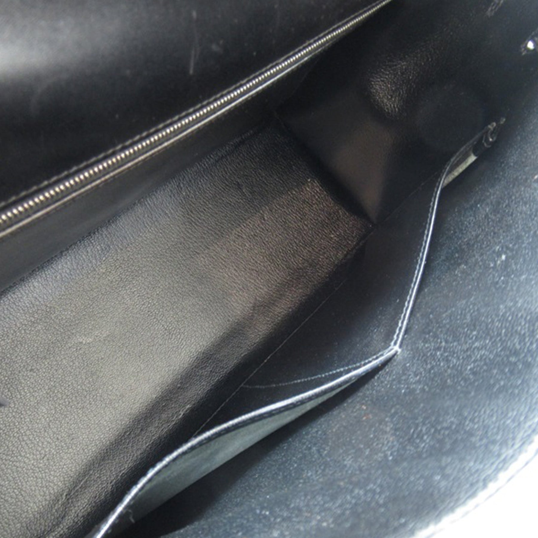 The Kelly 32 features a box calf leather body, a flat leather top handle, a front flap with twist lock closure, and interior zip and slip pockets. Comes with dust bag