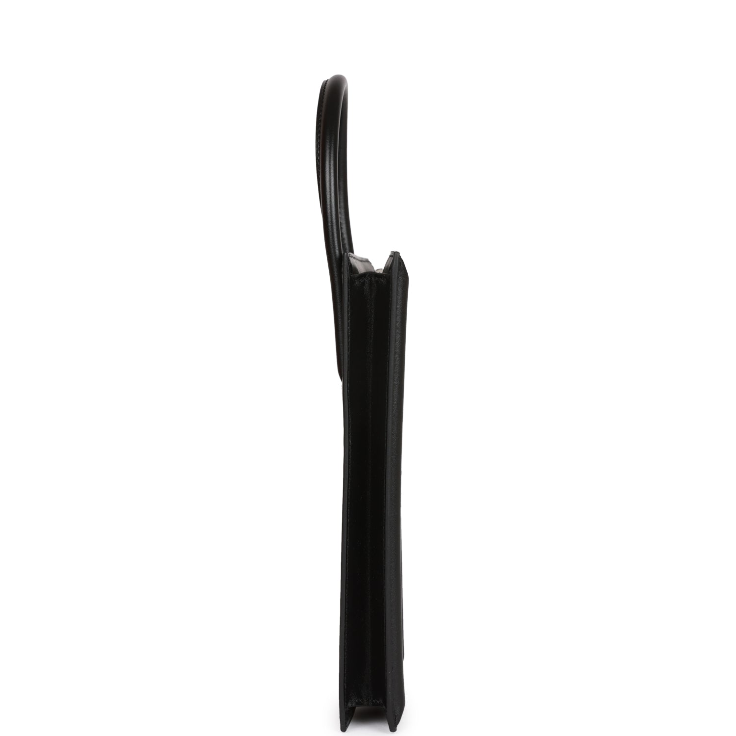 This Cadena Lock bag is of black tadelakt leather with palladium hardware and features tonal stitching, zip closure and single top handle .
