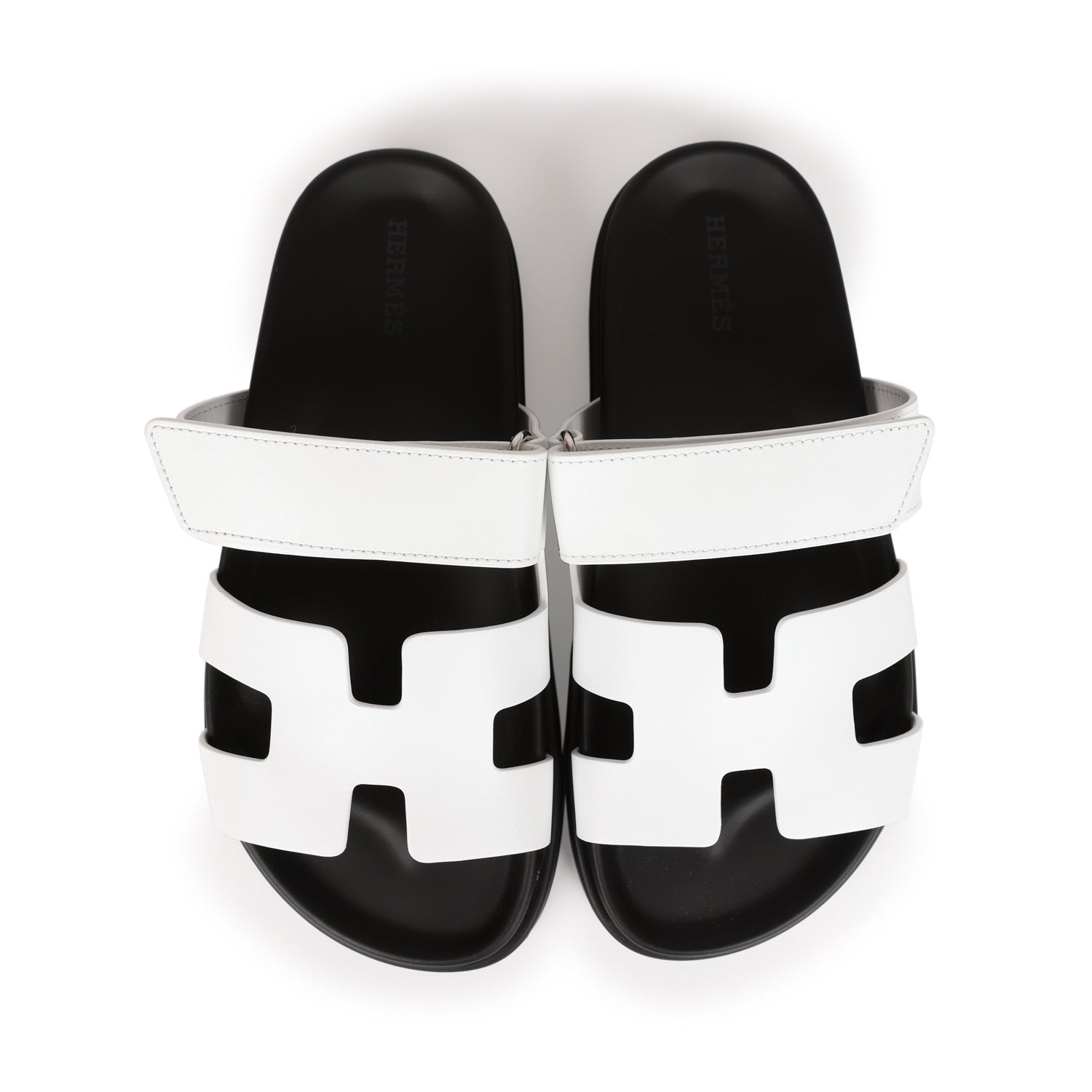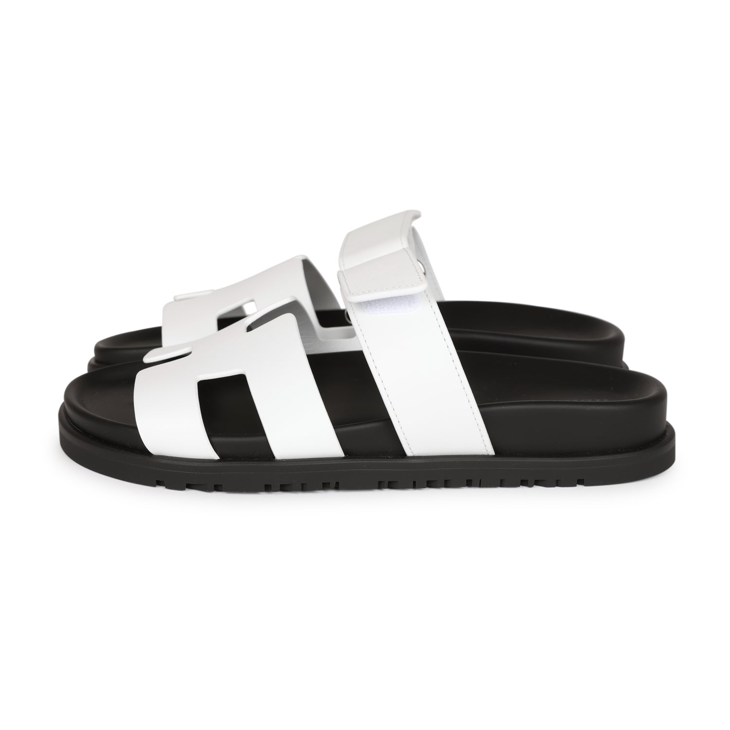 This pair of Chypre Techno sandals are in white and feature the iconic H and a velcro crossover strap.
