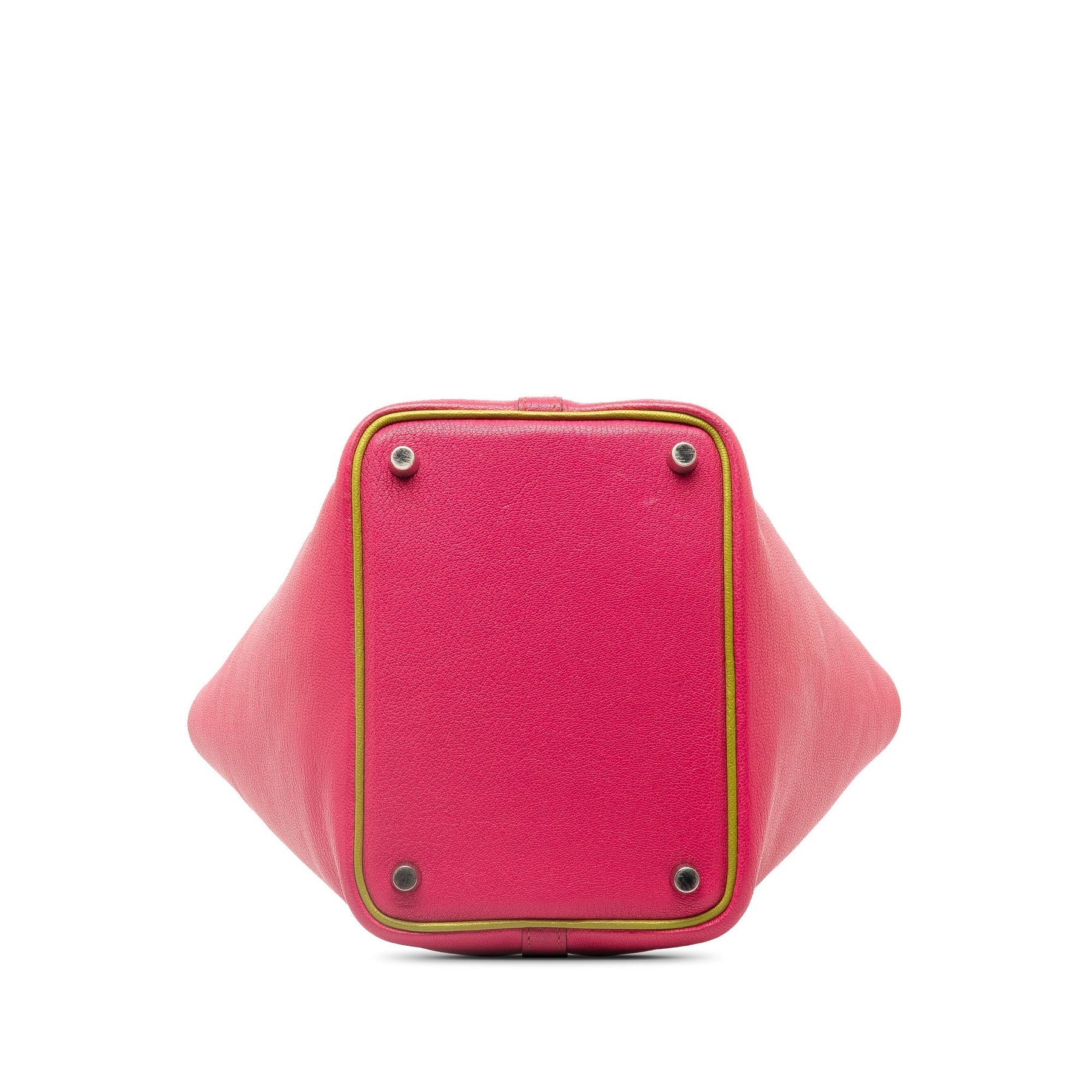 The Picotin features a clemence leather body, flat handles, and a buckle closure.