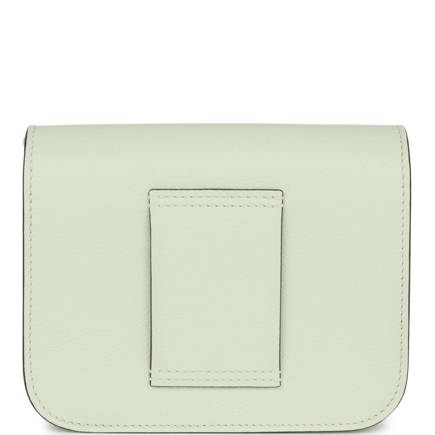 This Constance Slim Wallet is in Vert Fizz evercolor leather with palladium hardware and has tonal stitching, rear belt loop, front flap and removable coin pouch.