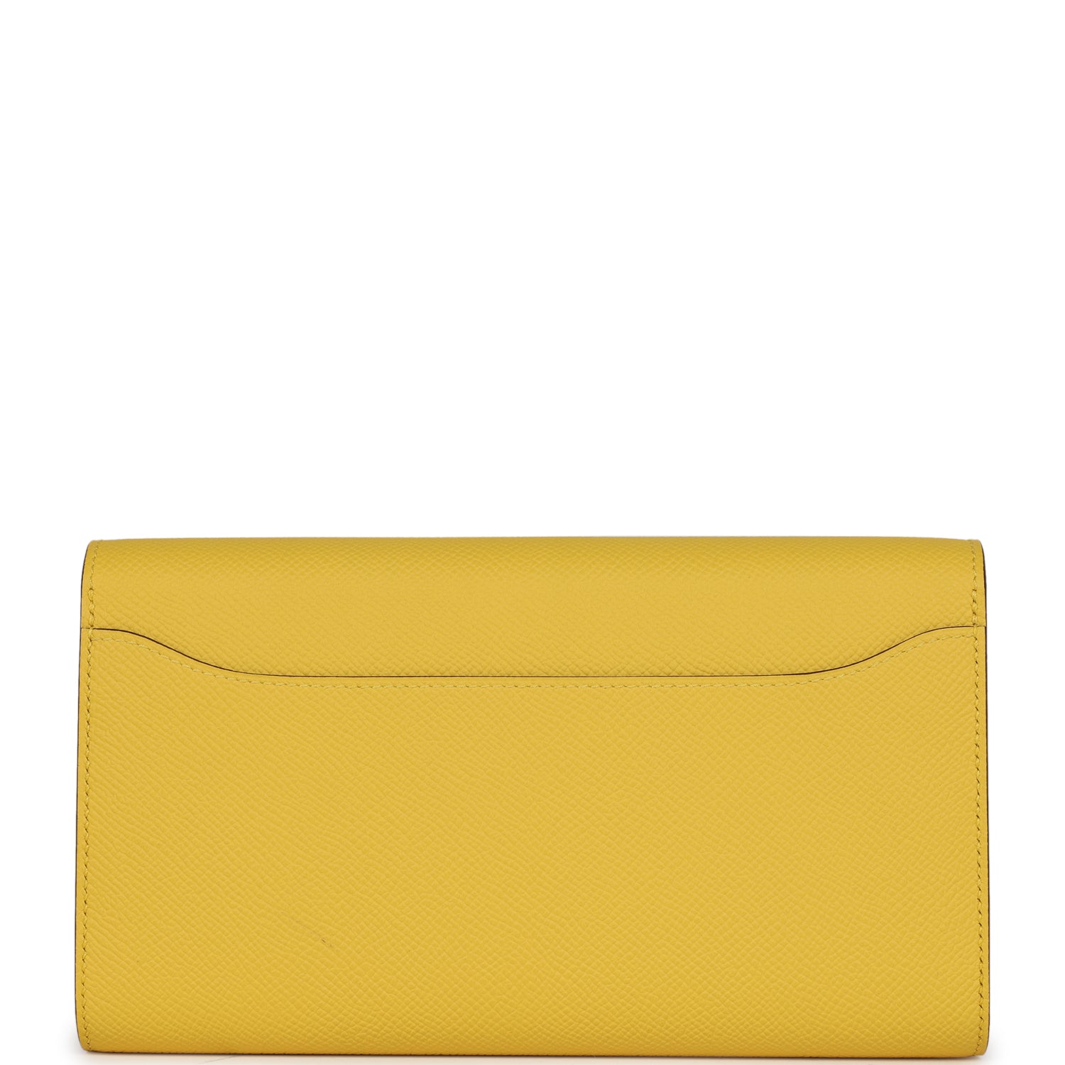 This Constance Wallet To Go is in Jaune De Naples epsom leather with gold hardware and has tonal stitching, metal "H" snap lock closure, open front compartment and removable crossbody strap.