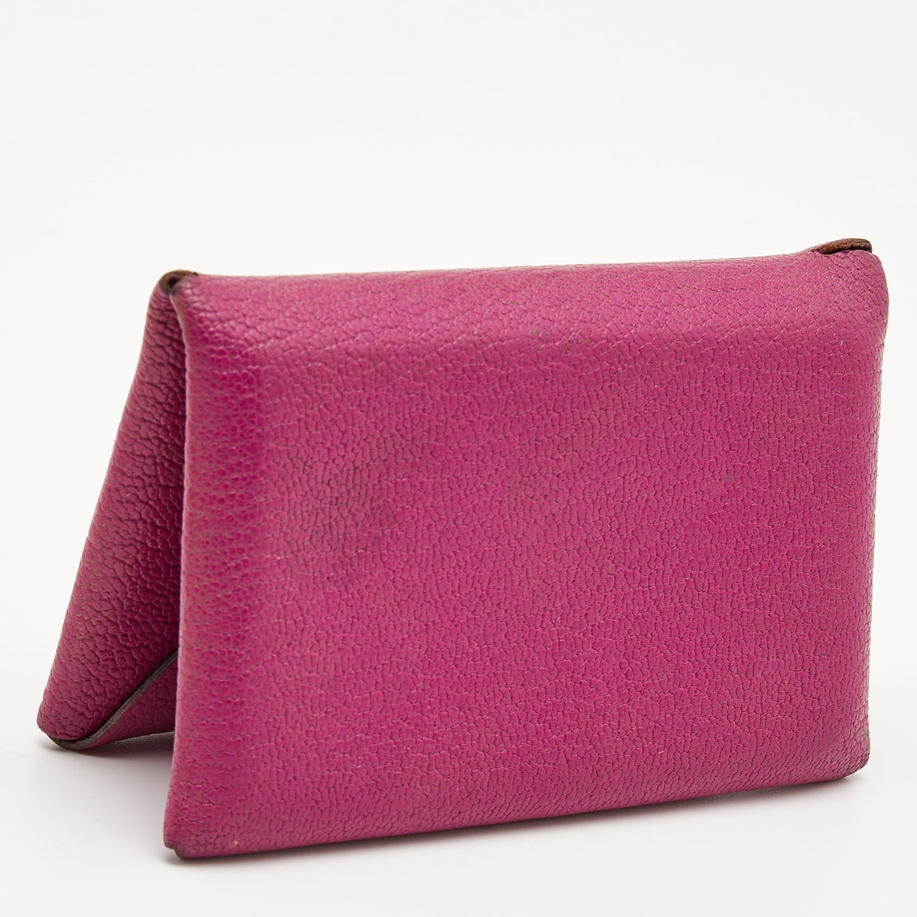 HERMES Cyclamen Chevre Mysore Leather Calvi Card Holder